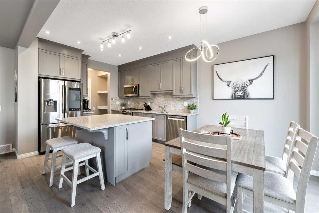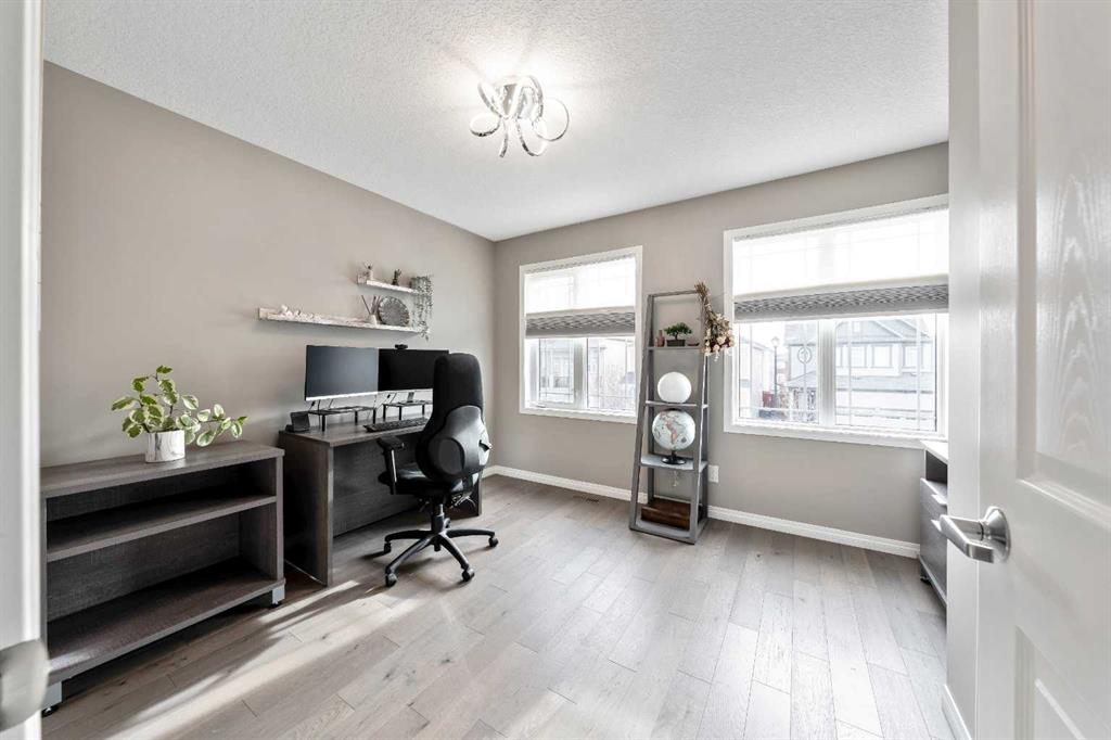 ***Welcome Home!*** This ELEGANT & HIGHLY UPGRADED Family Home is nestled on a quiet street & just steps to the PARK, POND & PATHWAYS. Boasting nearly 2650sqft over 3 levels, this GORGEOUS Turn-Key abode is truly made for entertaining & everyday living, offering a BRIGHT & MODERN OPEN CONCEPT design with STYLISH finishings & bathed in NATURAL Light. The main level is the Heart of the Home, highlighted by HARDWOOD Flooring, 9’ Ceilings & a Beautifully Designed CHEF’S KITCHEN featuring STONE Counters, Stylish Backsplash, UPGRADED Stainless Appliances including SMART FRIDGE & GAS RANGE, Walk-Through PANTRY & Large CENTRAL ISLAND with Eat-Up Bar! The adjoining Dining Room overlooks your EXPANSIVE BACKYARD & opens to the Spacious Living Room with cozy GAS FIREPLACE, providing a warm & inviting space to relax & entertain, or curl up with a good book. Completing this level is a Large DEN/OFFICE (or potential 4th Bedroom), a 2pc Powder Room & Mudroom, conveniently tucked away from the main living areas. Heading upstairs, the BRIGHT Open Staircase leads to your Private Master Retreat featuring a Large WALK-IN Closet & Full ENSUITE with Double Vanity, WALK-IN Shower & SOAKER TUB! Rounding off this level are 2 more generously sized Bedrooms, another FULL Bath & Laundry. Head out back into your PRIVATE Fully Fenced & Beautifully LANDSCAPED Backyard with where you can kick back & relax in your HOT TUB, enjoy your favorite drink on the STAMPED CONCRETE PATIO with GAZEBO or fire up the BBQ (with gas line) & entertain Friends & Family! PRIME LOCATION, just steps to Great Schools, Shopping, Restaurants, Fitness, Child Care & MORE! South Windsong is a Vibrant & FAMILY ORIENTED Community, surrounded by Tranquil GREENSPACES, PATHWAYS & PONDS, offering YEAR ROUND activities & close to the SPLASH PARK, SKATE PARK, BALL DIAMONDS, Skating Rinks & multiple Playgrounds! Simply MOVE IN & start making new memories with your Family!