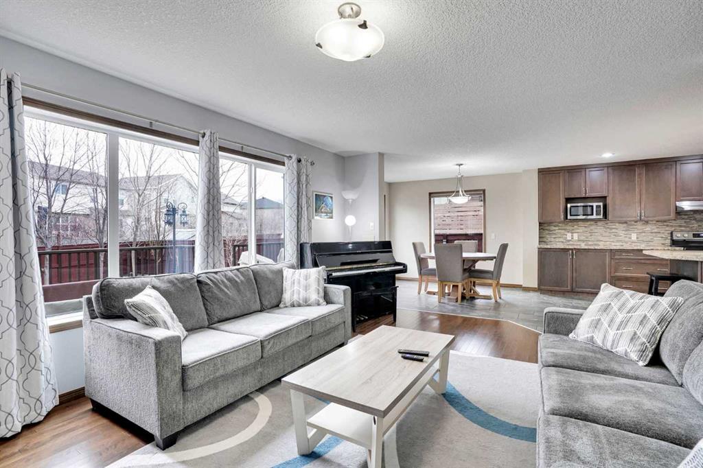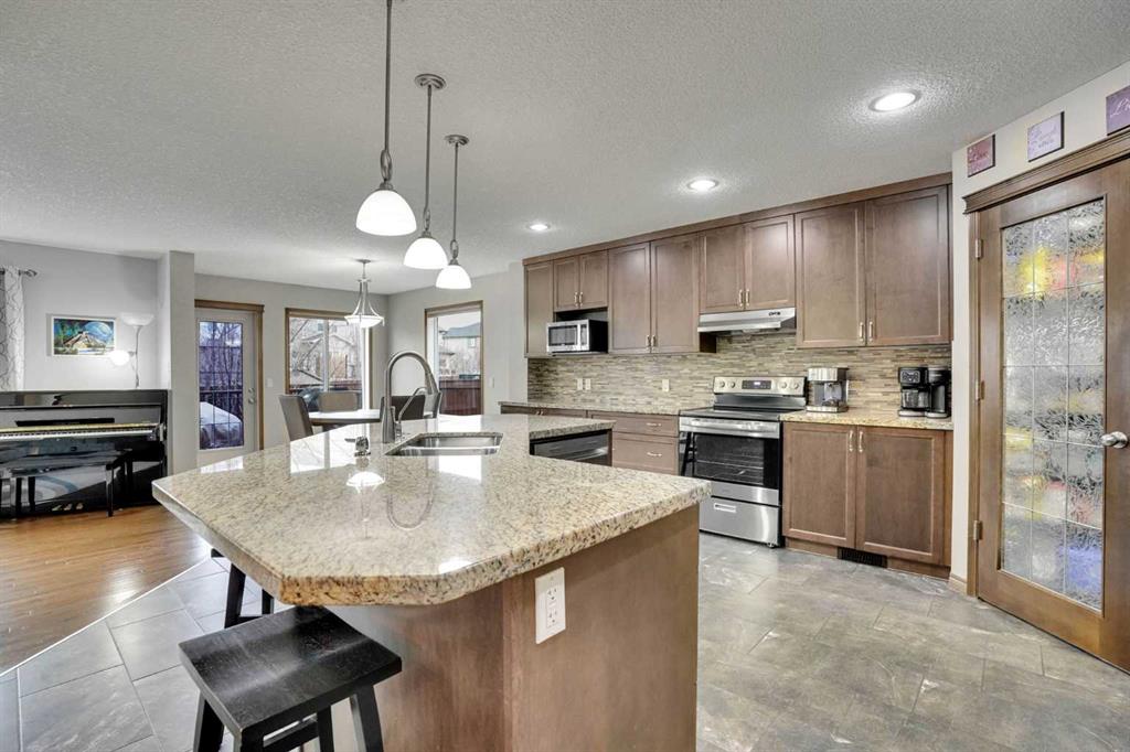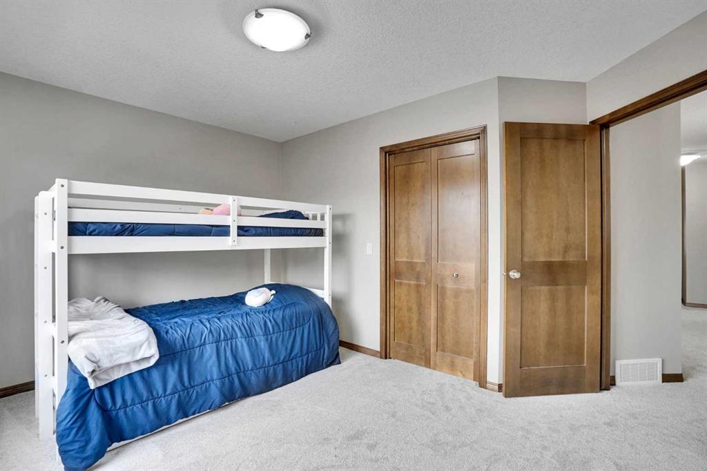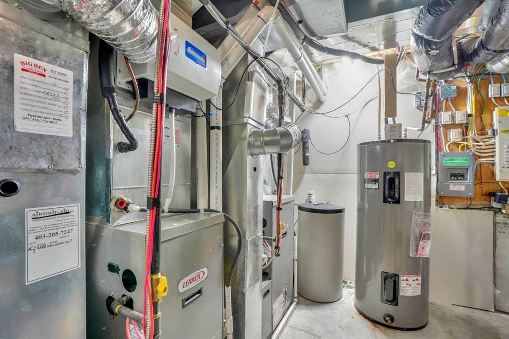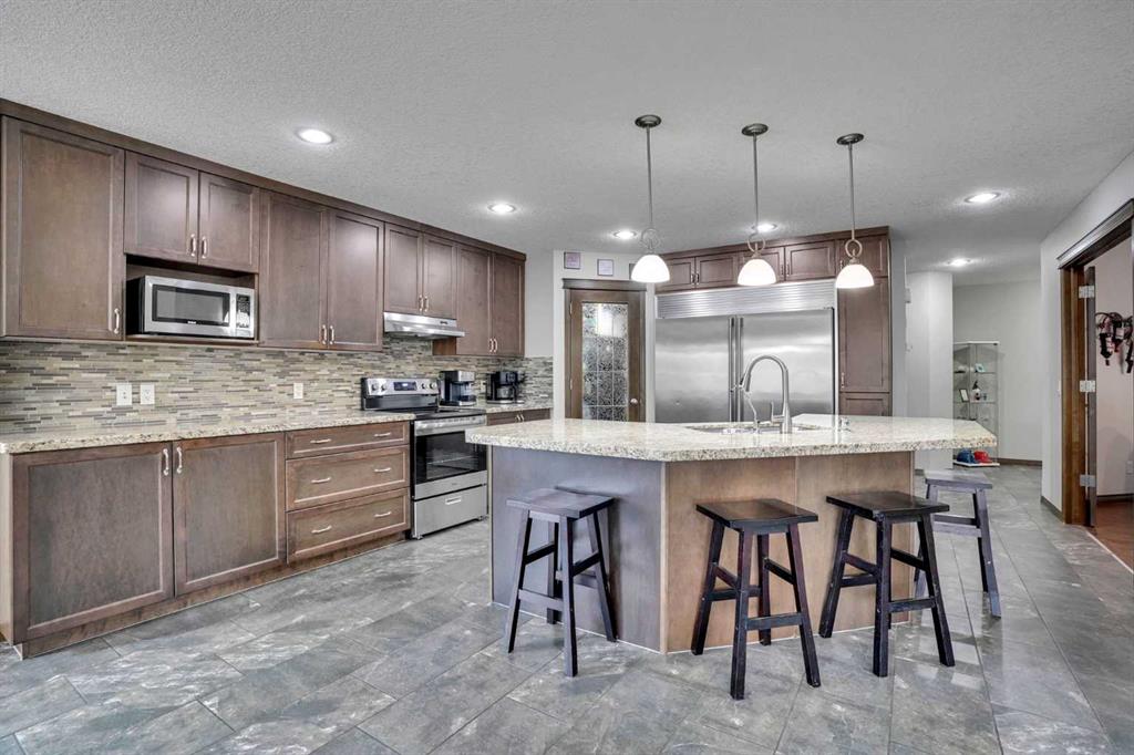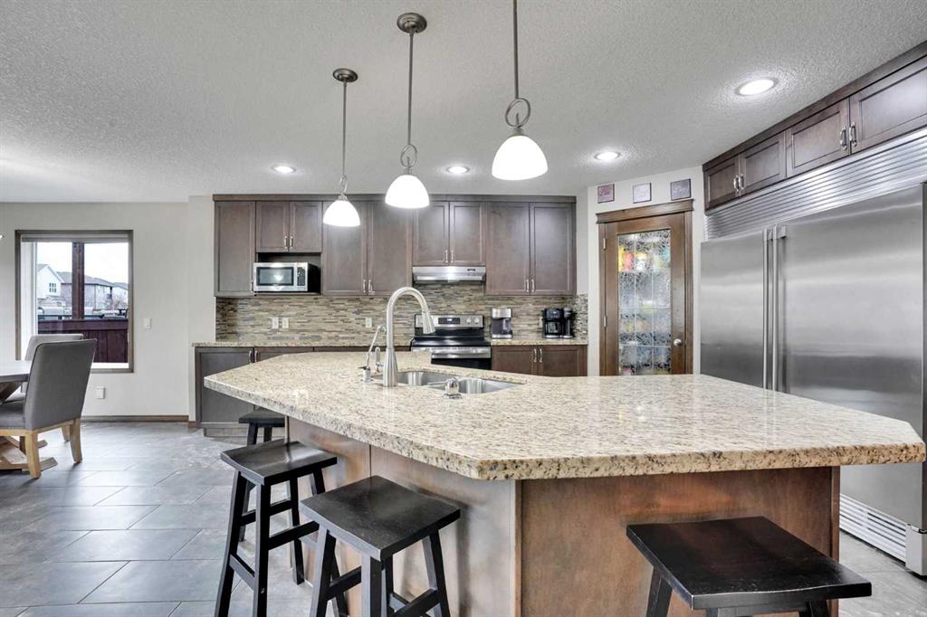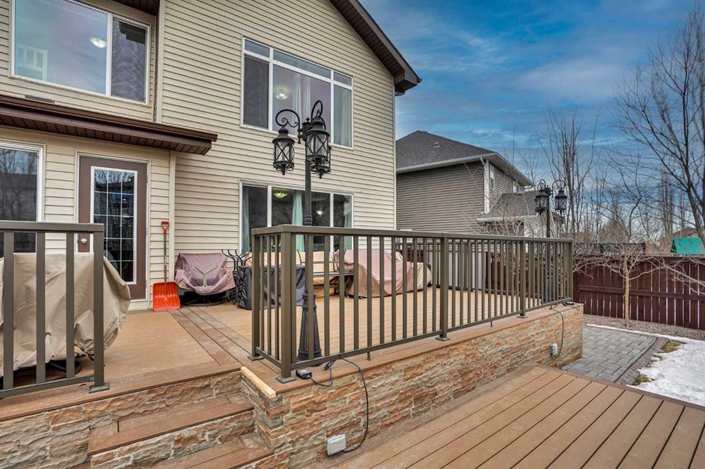 Exceptional 6 bedroom family estate in the highly sought-after community of Coopers Crossing in Airdrie, offering over 3,600 sq ft of beautifully developed living space on a private pie-shaped lot with a sunny southeast facing backyard. This home is loaded with premium upgrades and thoughtful features including solid maple doors throughout, soundproofed and insulated interior walls and floors, central A/C (2023), commercial-grade hot water tank (2024), 2 furnaces and humidifiers (cleaned Feb 2026), new carpet (Oct 2025), SMART home with centralized media/network hub, and wired security system. Designed for both everyday comfort and upscale entertaining, the main floor showcases a formal dining room behind elegant double French doors, a warm and inviting living space with a fireplace, and an abundance of windows that flood the home with natural light. The thoughtfully designed layout includes a walk-through pantry connecting the spacious mudroom/laundry area to the kitchen, making daily living seamless and functional. The chef-inspired kitchen is a true highlight, showcasing extended height cabinetry, a large centre island, and granite countertops, along with premium appliances including a commercial-grade double fridge/freezer and Kinetico water softener & mini Mac drinking system. Upstairs, you’ll find 4 generously sized bedrooms including a stunning primary retreat with vaulted ceilings, walk-in closet, and a luxurious 5 piece ensuite. A spacious bonus room completes the upper level, perfect for family movie nights or a kids’ retreat. The fully finished basement is an entertainer’s dream, featuring a large recreation room, wet bar with fridge and wine cooler, 2 additional bedrooms, and a full bathroom, ideal for guests, teens, or multi-generational living. Low maintenance front and backyard, sunny, equipped with underground sprinklers and a double deck with natural gas BBQ hookup, tall trees line three sides for extra privacy. Front attached garage is heated, while the extra-wide triple driveway offers additional parking. Brick paver pathways add to the home’s impressive curb appeal. Located in one of Airdrie’s most prestigious communities, you are just minutes from Cooper’s Crossing School (K-4), St. Veronica School, and nearby access to W.H. Croxford High School. Enjoy convenient shopping at Cooper’s Town Promenade, with easy access to grocery stores, restaurants, and everyday amenities. Commuters will appreciate quick connections to Yankee Valley Boulevard, 8 Street SW, and Highway 2, making travel to Calgary effortless. This is a rare opportunity to own a meticulously maintained, feature-rich home in a prime location delivering space, privacy, and luxury for the modern family.
