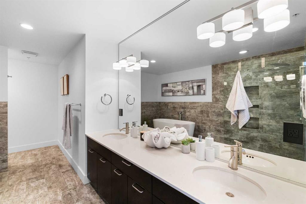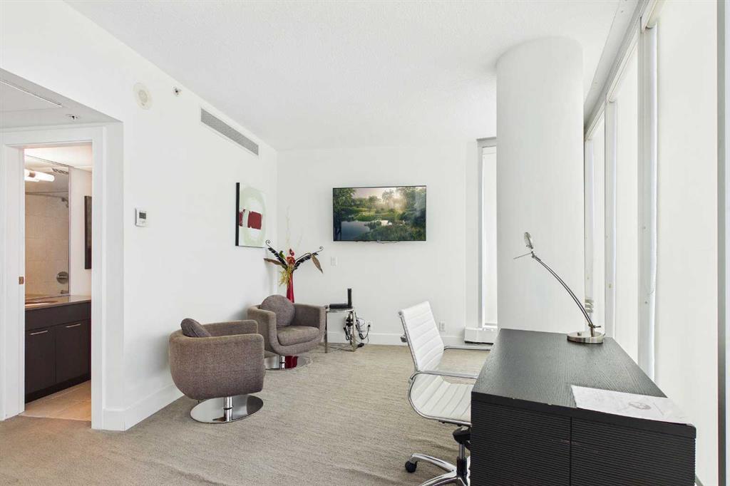 Your day begins with the soft glow of the morning sun spilling through floor-to-ceiling windows, offering panoramic views of downtown Calgary from the comfort of your bedside. After a workout in your private home gym and a coffee on one of your three expansive balconies, the gentle trickle of the custom stone waterfall in the living room creates a serene soundtrack for your morning. This home is designed for effortless hosting and privacy, featuring two spacious primary bedrooms, each boasting its own private ensuite—including a lavish 5-piece spa retreat in the main suite. Whether you’re relaxing in the open-concept heart of this 2,600+ sq ft sanctuary or hosting guests in their own dedicated wing, every inch of this home exudes executive sophistication. When it’s time to head out, your private elevator opens directly into your suite, whisking you down to the vibrant pulse of the Beltline. You are perfectly positioned in the new Entertainment District, just steps from the new Calgary Flames arena, Stampede grounds, and the river pathways. Living at the Arriva means absolute peace of mind, supported by 24-hour security and concierge services, a rooftop garden, owner’s lounge, guest suites, and central A/C—a true urban masterpiece in the center of it all.