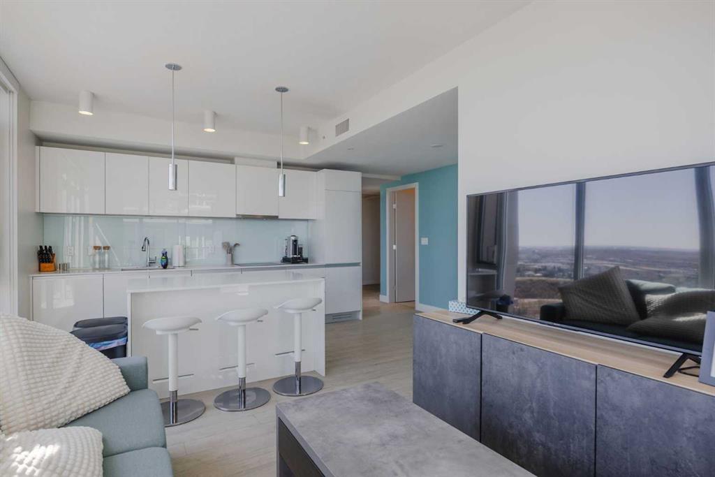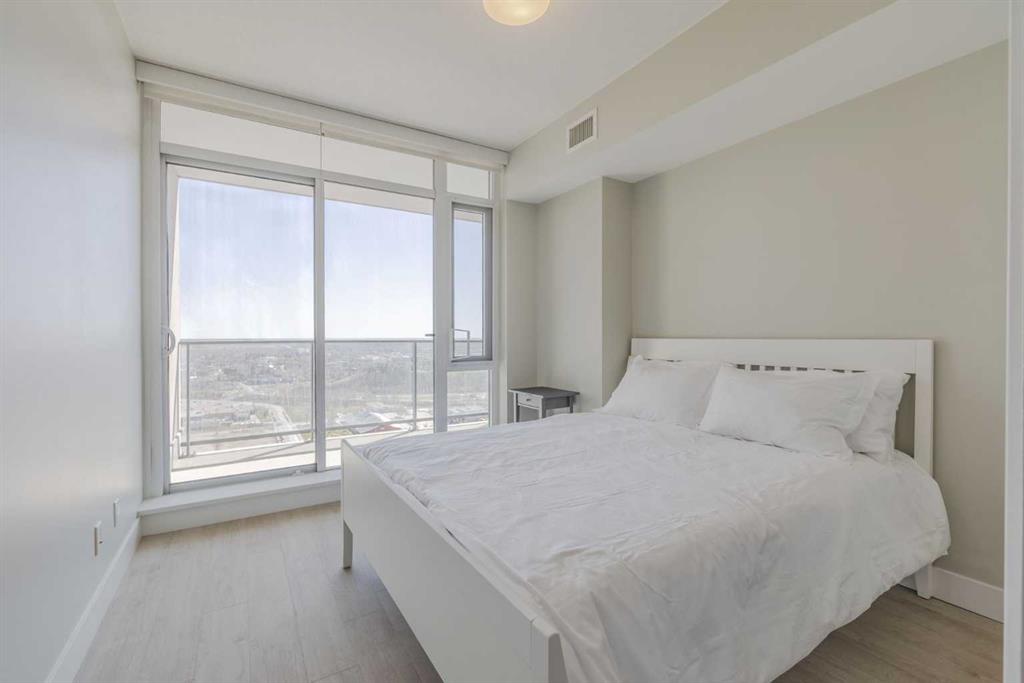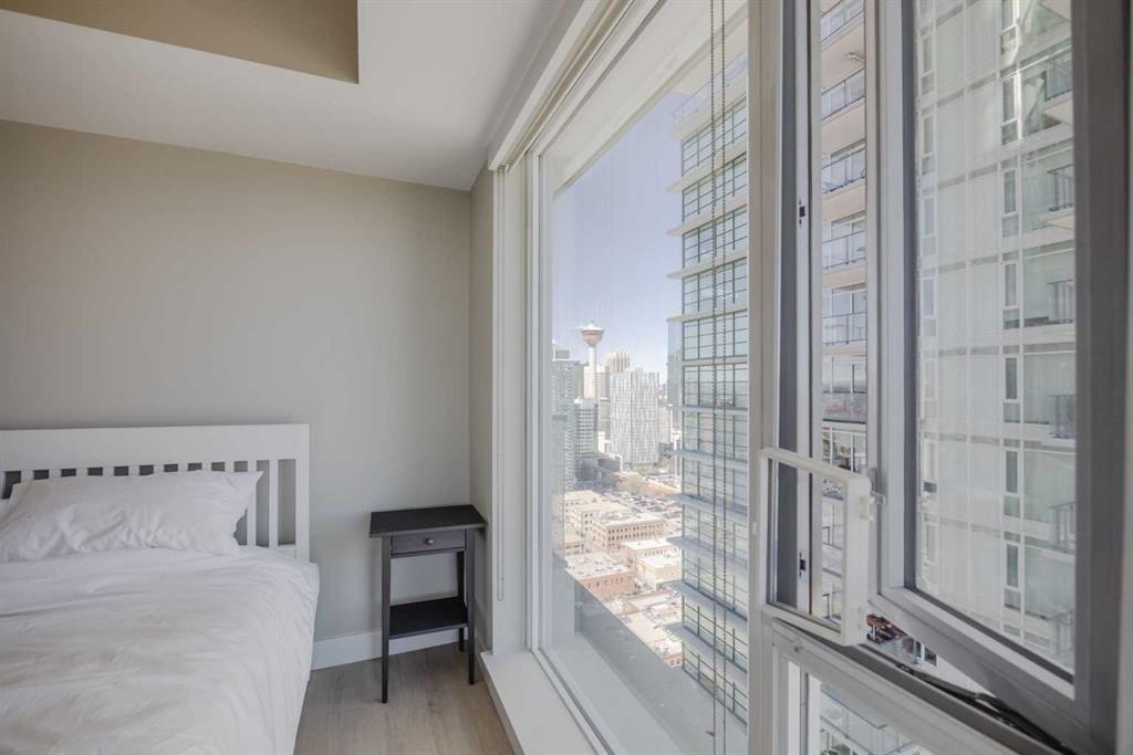 Beautiful CORNER unit at the Guardian – Calgary’s tallest residential building, with panoramic city and river views. This incredible 2-bedroom, 2-bath unit is situated on the 30th floor and includes a TITLED PARKING stall and assigned storage locker. This unit is in PRISTINE CONDITION and move-in ready. This home has an open functional floor plan, wrap-around corner views to the north and the east, and TWO SPACIOUS BALCONIES. The kitchen is equipped with built-in German appliances, and a sleek modern kitchen perfect for cooking and entertaining. Floor to ceiling windows span the entire width of the suite, offering a bright airy space during the day and the ambiance of city lights at night. The primary suite is located away from the 2nd bedroom and has a walk-in closet and 4pc ensuite. The building also includes extensive amenities such as a state-of-the-art gym, workshop, social room with garden terrace, 24-hour security & concierge. Conveniently located in the Beltline community of downtown Calgary within close proximity to Downtown, the Stampede grounds, Central Public Library, River walk and parks, Sunterra Market, and the LRT. Enjoy the convenience and excitement of downtown living, while taking advantage of the ultimate opportunity to get invested into a rising neighborhood.