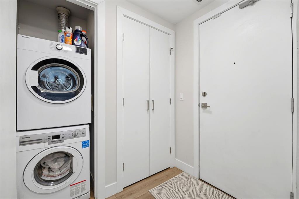 This gorgeous condo has it all! The perfect blend of location, lifestyle, and value in this newer building THE DRAKE, situated in the HEART of downtown, the BELTLINE. Your thoughtfully designed unit offers a bright, modern interior paired with low condo fees—making it an ideal choice for both homeowners and investors with an OUTDOOR LIVING SPACE that is so hard to find that feels like having an extension of your living space without the added cost! This is one that people wait for! It is a beautiful, modern space, that is bright and open with gorgeous upgraded vinyl plank floors, a modern kitchen with stainless steel appliances and a sit-up peninsula, granite countertops allowing tons of prep space and an area youll love to cook in. These units are built with high ceilings in most living areas creating a roomy, expansive feel. The living area has a stone textured feature wall with a wall of glass windows and your deck doors, leading outside and letting all of the light in! Outside you have a private deck space with upgraded railings and low maintenance appeal with a view to enjoy your morning coffee, and extended living space outside creating year round enjoyment and giving the feel of a house -but in a condo, and without the cost! The outdoor space can house a decent size patio set and outdoor entertaining room for you and your guests to relax in. Back inside you have your bedroom with dual closets and light tones, giving you a stunning landscape to wake up to each day. Your 4 pc bath includes a modern vanity and tub/shower combo and off of the entry way is an in-suite laundry that completes the unit. What else could you need? The unit comes with a titled underground parking stall and located just off of 17th Ave (otherwise known as ‘the pulse of Calgary) in the Beltline neighbourhood that has it all! Luxury salons, quaint coffee shops, executive businesses and an ensemble of choice restaurants are just a few amenities to call this neighborhood home. The Drake is one of the newer condo projects to hit this popular location with water smart plumbing, and non-toxic paint finishes and are just a few features that help make the Drake condos eco-friendly as well. Whether you’re looking for convenience, comfort, or smart urban living, this condo delivers it all—without compromising on value. Dont miss out on viewing this stunning condo and making it yours. Its a “unicorn” of condos and wont last!