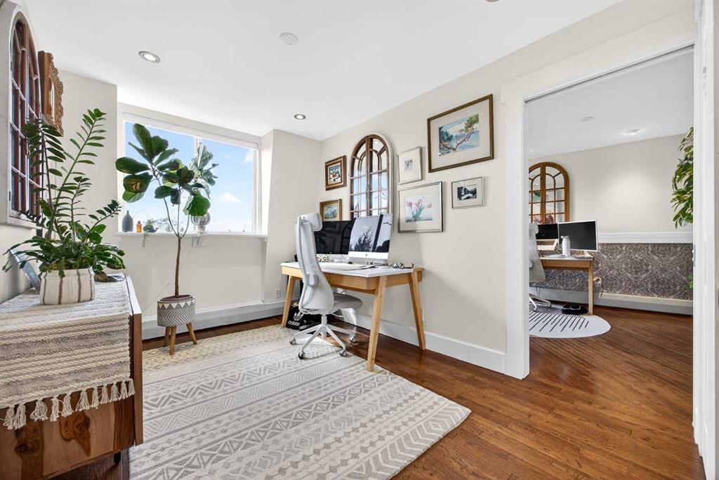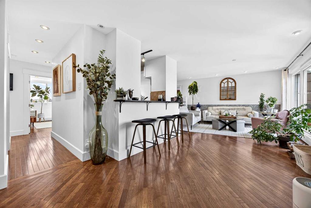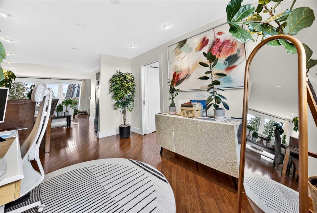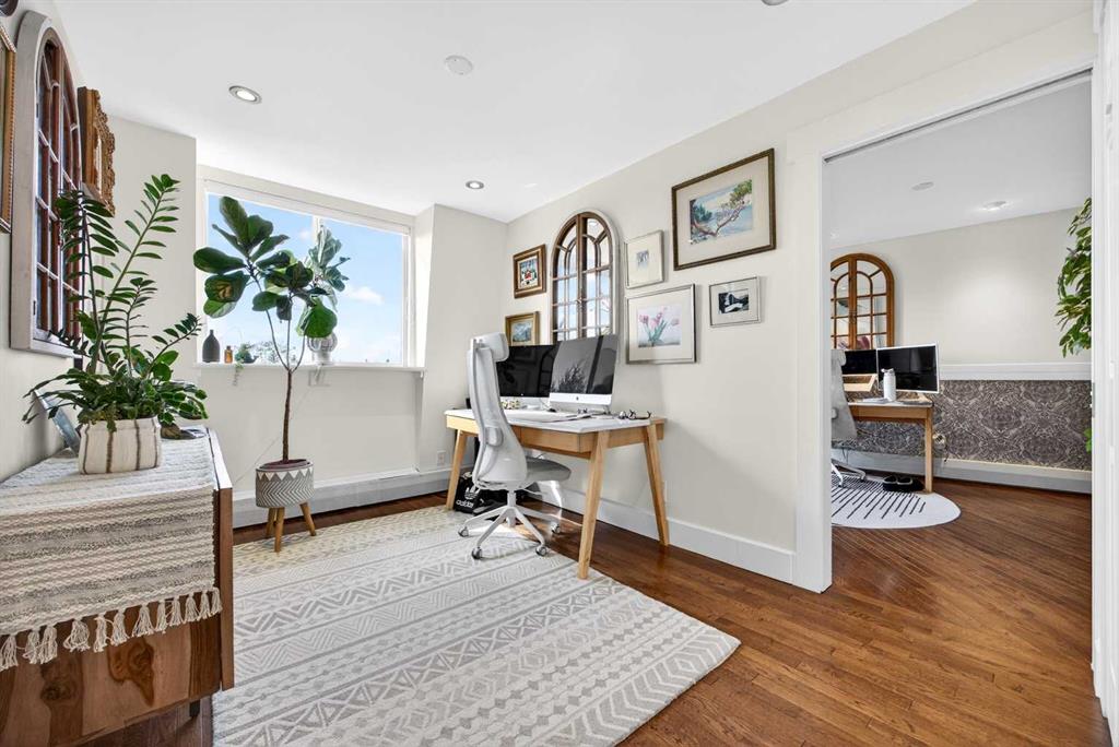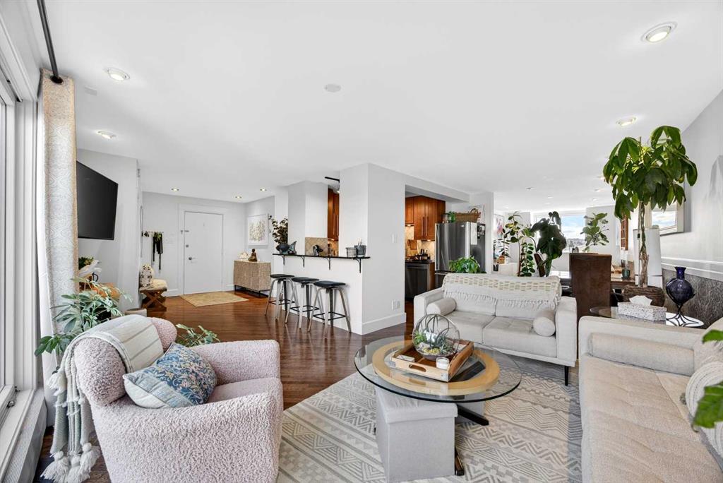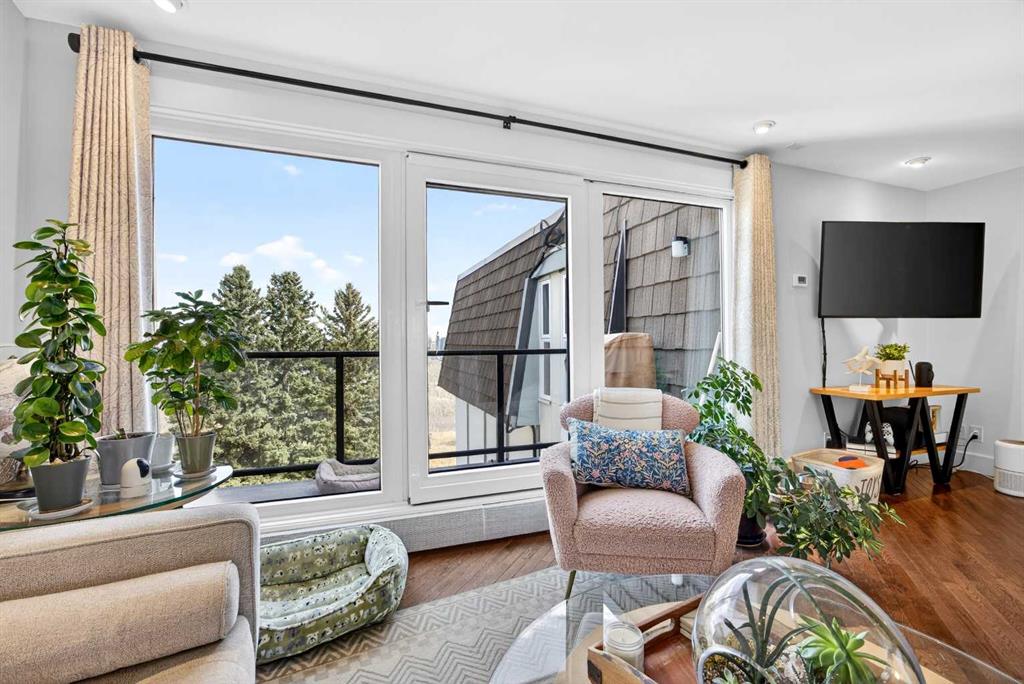 The PENTHOUSE @ RIVERVIEW l OVER 1030 SQ FT l 2 BEDROOM + FLEX + 2 FULL BATHROOMS l BALCONY w DOWNTOWN VIEW l CONCRETE BUILDING l 1 PARKING STALL + 1 RENTED STALL l ENSUITE LAUNDRY ***ATTENTION: PROFESSIONALS l FIRST-TIME BUYERS l INVESTORS l DOWNSIZERS l DISCERNING BUYERS*** A rare opportunity to own the top-floor penthouse unit in this well-maintained inner-city building — one of the largest and most impressive suites in the complex, offering over 1,030 sq ft of refined, light-filled living space. Every room benefits from generous windows, hardwood floors, flat ceilings with dimmable pot lights, and a seamless open-concept layout that feels both elegant and effortlessly livable. The kitchen shines with quartz countertops & SS appliances flowing naturally into the living and dining areas — where breathtaking downtown Calgary views take centre stage. Step onto your private balcony and let the skyline speak for itself. The spacious primary bedroom features its own ensuite, while a second bedroom and flex room offer versatility for any lifestyle. A brand new washer and dryer complete this truly move-in-ready home. The building is equally impressive — a solid, well-maintained concrete structure managed by an exceptionally proactive condo board. Recent capital upgrades include new balconies, patio windows & doors, exterior walls, and a new boiler, with no major projects anticipated ahead. The reserve fund is on track to be fully funded within a couple of years, with condo fee reductions planned to follow. Backing onto Edworthy Park & Douglas Fir Trail systems, Direct Bike Path to downtown YYC, Walking Distance from Train Station, Steps from the Elbow River pathways, 17th Avenue, and the best of inner-city Calgary living. Penthouse views – Turnkey condition. & a building you can trust.