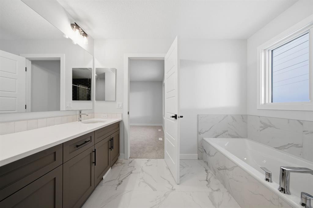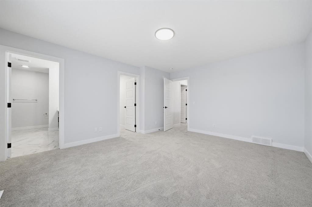 Upstairs are two spacious primary bedrooms, each with walk-in showers, including a luxurious five-piece main ensuite. Finished with LVP flooring, tile in bathrooms, and quartz countertops throughout. Built Green certified with triple-pane windows, high-efficiency furnace, solar-ready rough-in, EV charger rough-in, and a full smart home package.