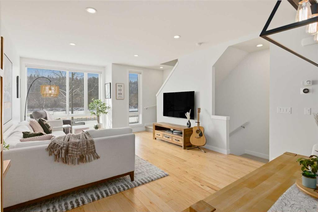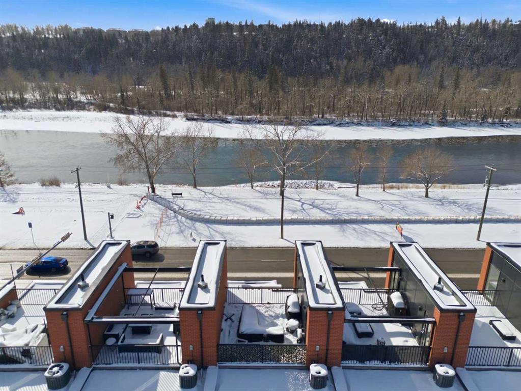 **BOW RIVER VIEWS | ROOFTOP PATIO | 2-BED | 2.5 BATH | DOUBLE ATTACHED GARAGE | LOW CONDO FEES | DESIGNER UPGRADES | PRIME INNER-CITY LOCATION.** Breathtaking views of the Bow River define this 1,676 sq ft townhome in The Henry, one of Parkdale’s most sought-after modern brownstones. The bright open main level captures river and pathway views through large front windows and features a designer kitchen with full-height cabinetry, quartz counters, stainless steel appliances and a large island that connects seamlessly to the dining and living areas. Upstairs, both bedrooms include walk-in closets and private ensuites, including a primary suite overlooking the river. The private rooftop patio with sunny southwest exposure creates an incredible outdoor space for relaxing or entertaining while taking in the Bow River setting. The entry level offers a versatile flex space ideal for a home office or gym, plus a double attached garage with additional storage. Located directly across from the Bow River pathway system and minutes to Foothills Hospital, the University District and downtown. Opportunities to own a river-facing brownstone with a rooftop patio in The Henry rarely become available. Book your private showing today.