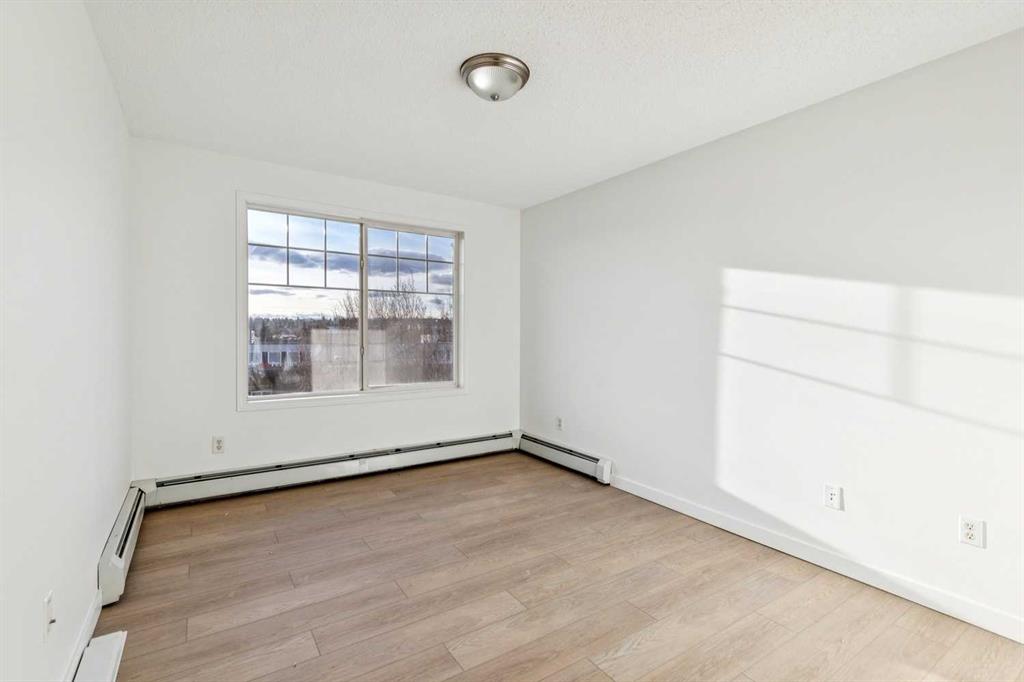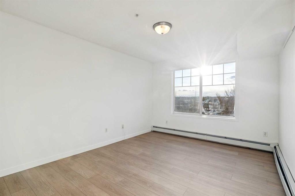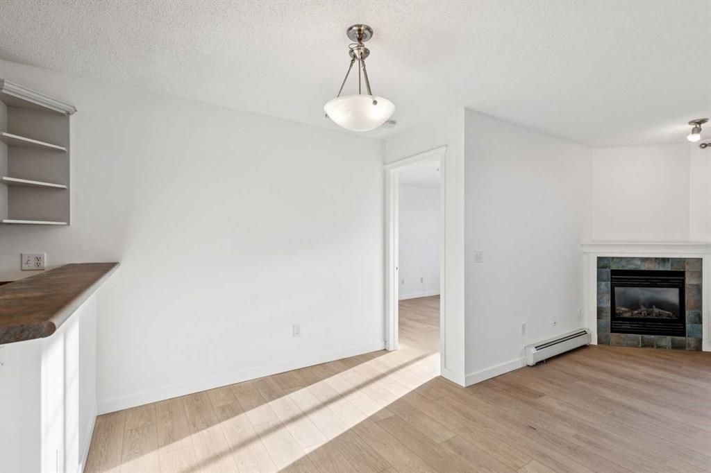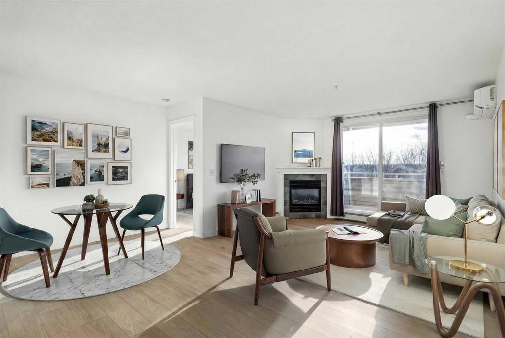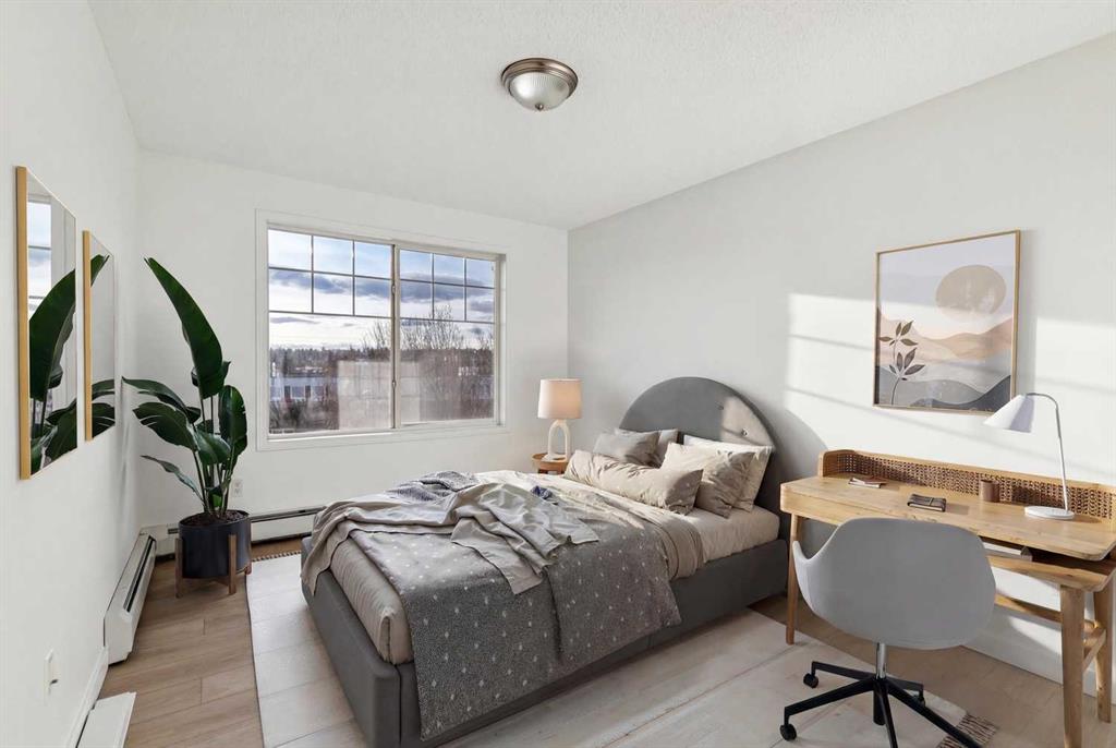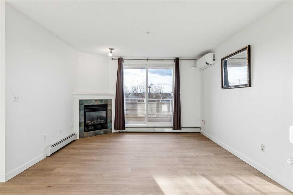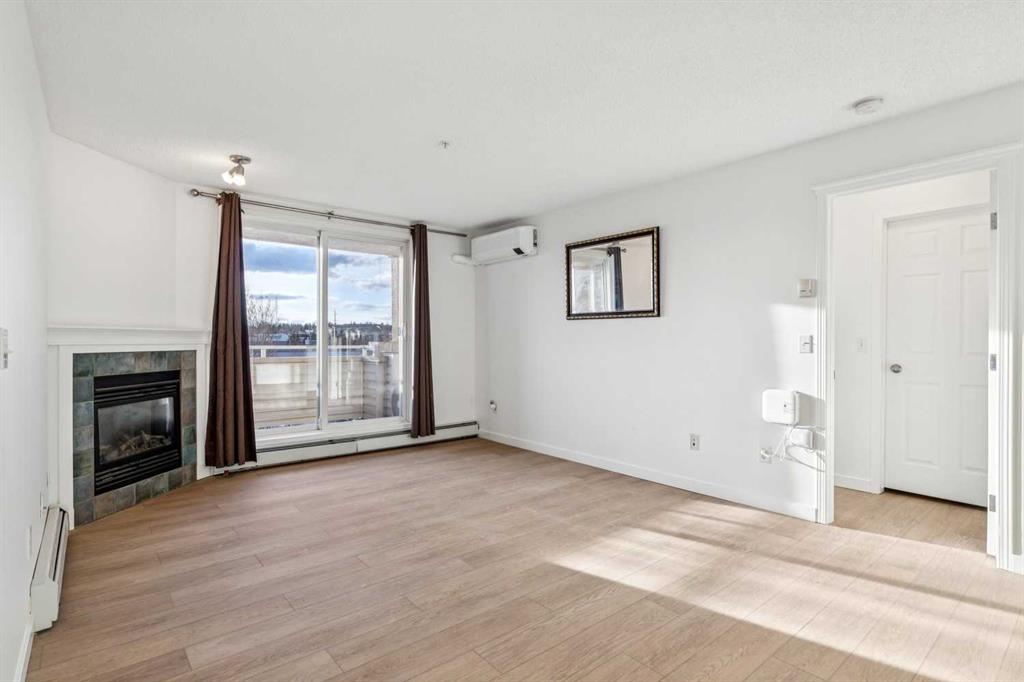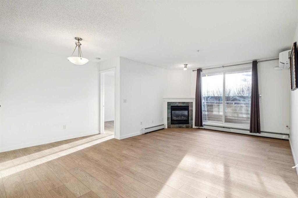 Why pay rent when you can own this affordable 3rd-floor 970 sq. ft. apartment with west-facing urban views! Tastefully upgraded with luxury vinyl plank flooring throughout, 9-foot ceilings, a refreshed kitchen, professionally painted, and estate-quality baseboards. This TWO-bedroom home has a warm gas fireplace to keep you cozy warm in the winter and an A/C unit to cool you off in the summer. Enjoy the sundrenched rooms, sweeping urban views, in-suite laundry, separate underground storage and underground heated parking. This terrific building has updated hallways and features two guest suites, a common room, and more. Full lake privileges include swimming, skating, tennis and pickleball, fishing, and hanging out on the beach. Walk to Fish Creek Park, shopping, schools and great access to the LRT. Condo fees include heat, water, sewer, and electricity.