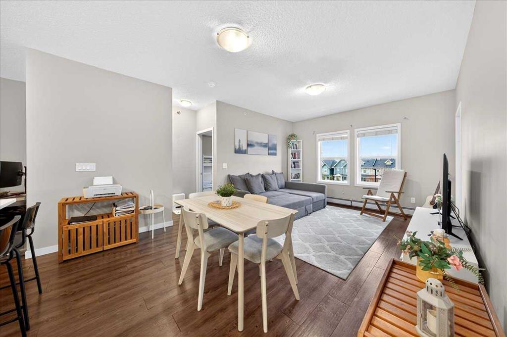 Welcome to Unit 302 (Top floor)This well-designed and spacious 2 bedroom, 2 bathroom condo is located in the highly desirable Cranston community. Boasting approximately 920 sqft of living space, this third-floor, top-unit home offers privacy with no neighbors above and is conveniently close to the hospital and YMCA. The modern kitchen features ample cabinetry, generous counter space, and a handy pantry, flowing seamlessly into the bright dining and living areas – perfect for everyday living and entertaining. Large windows fill the space with natural light, creating a warm and inviting atmosphere. The primary bedroom includes a walk-in closet and a 4-piece ensuite, providing a private retreat. A well-sized second bedroom and an additional 4-piece main bathroom make this home ideal for guests, a home office, or shared living. In-suite laundry adds everyday convenience. Step outside to your private balcony, perfect for relaxing during warmer months. The unit also features a welcoming foyer with ample closet space. This quiet, family-friendly building makes this home both comfortable and practical. Cranston residents enjoy the Cranston Century Hall, which has a gym, splash park, skating rink, sports courts, and event spaces. If you love the outdoors, there are walking and biking paths that connect to Fish Creek Park and the Bow River. Schools, playgrounds, parks, shops, restaurants, and entertainment are all nearby at Cranston Market and Seton Urban District, along with South Health Campus, Cineplex, and the world’s largest YMCA. With easy access to Deerfoot Trail, Stoney Trail, and public transit, getting around is simple. Perfect for first-time buyers, investors, or those looking to downsize, this home combines comfort and convenience.