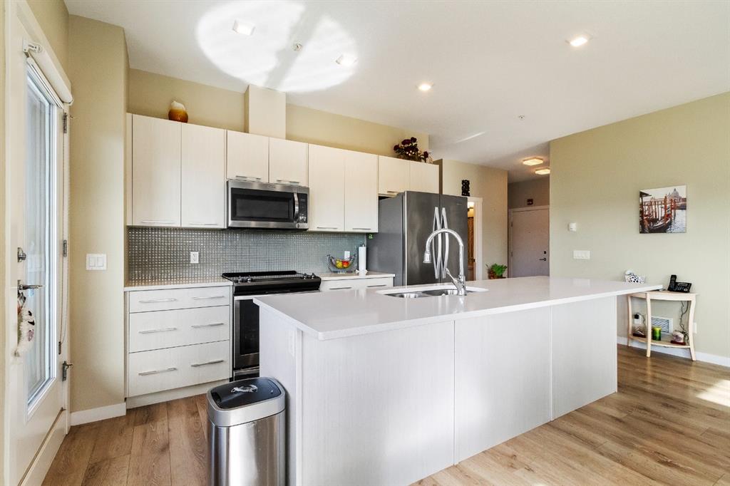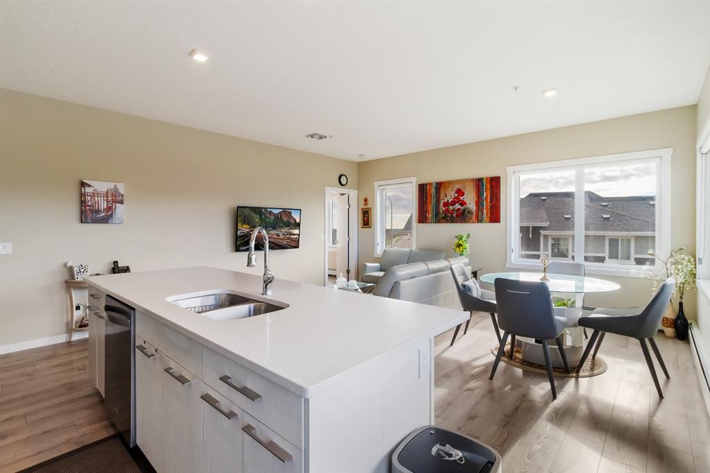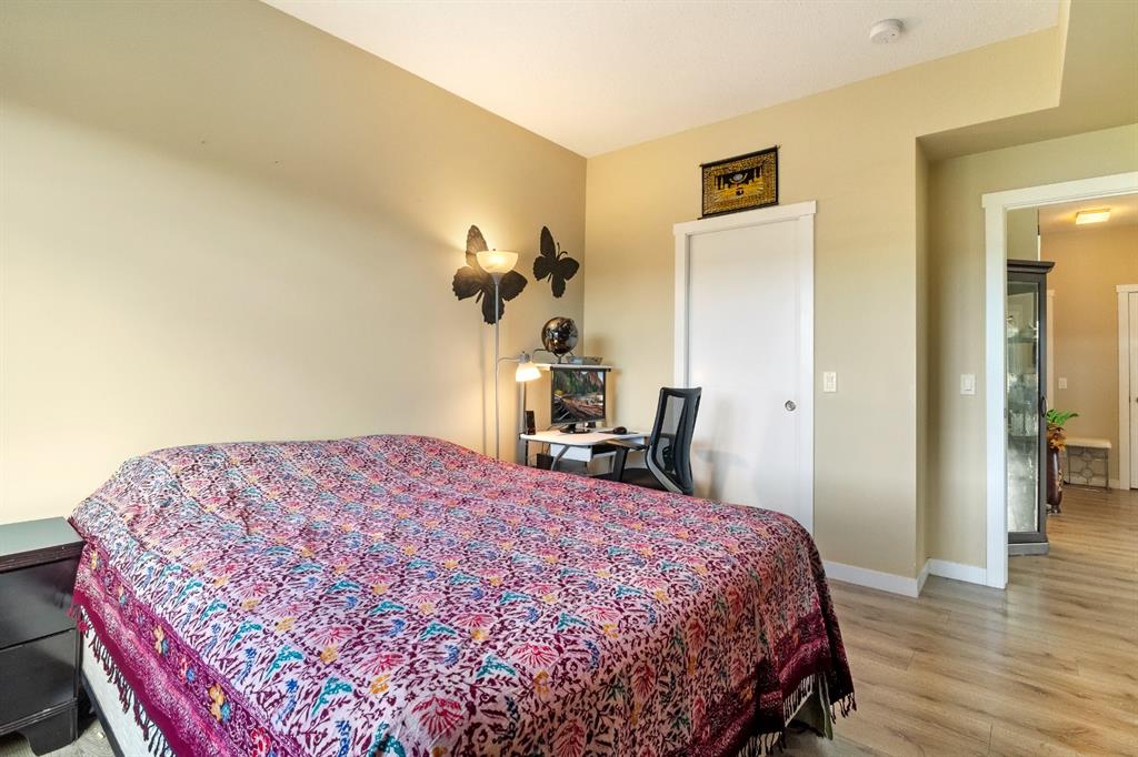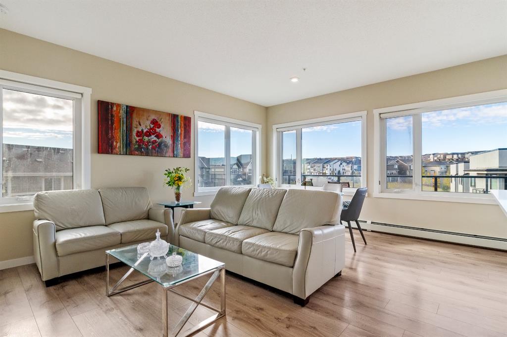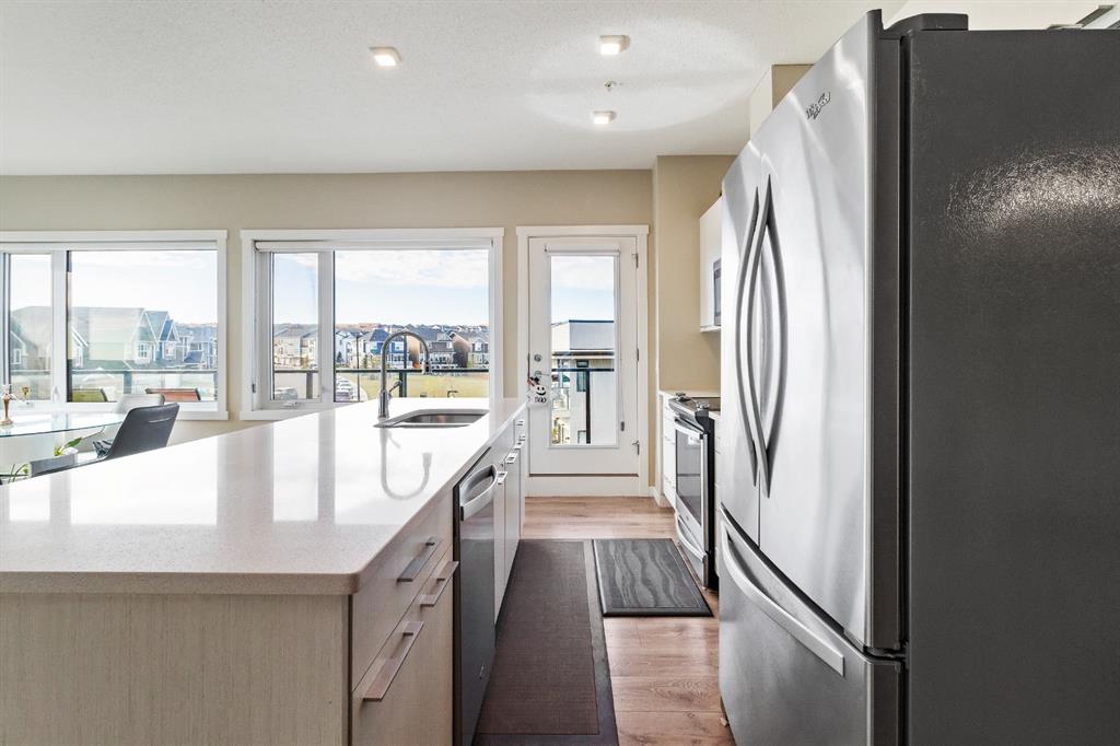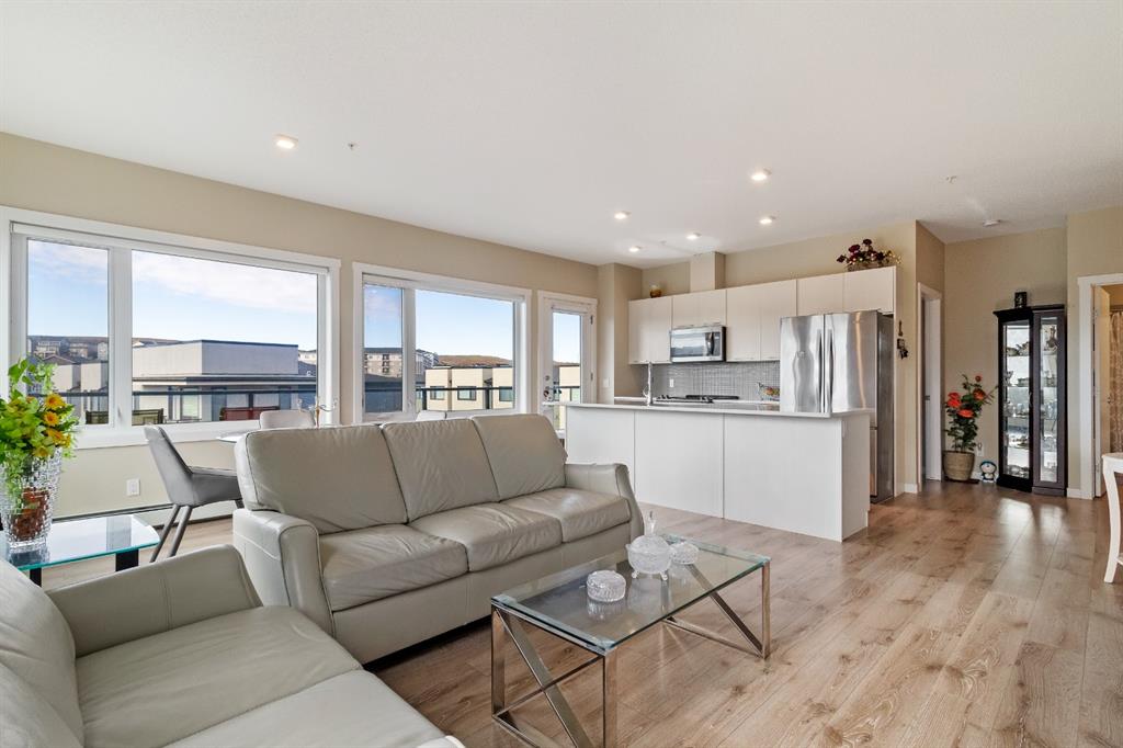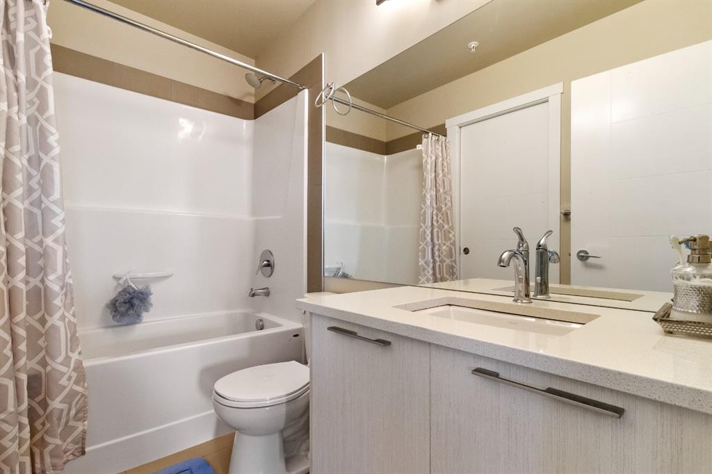 This beautiful and spacious 2 bedroom, CORNER UNIT condo features 9′ ceilings, 23′ private balcony, and VIEWS of the park! The open concept living area combines the spacious kitchen with detached island, dining room and living room with beautiful corner southwest facing windows. The owner’s suite, which can easily fit a king sized bed, features a sizeable walk in closet and private ensuite. To complete this beautiful home there is a large 2nd bedroom and ample storage in the in-suite storage room. There are no carpets in this unit as laminate floors throughout was the builder upgrade. The biggest difference this building has to offer is it is a one apartment building development meaning less dense compared to others which have 3+ buildings. Also, great location with easy access to Stoney Trail and close to Walmart, Costco, Good Life and many other shops and restaurants!