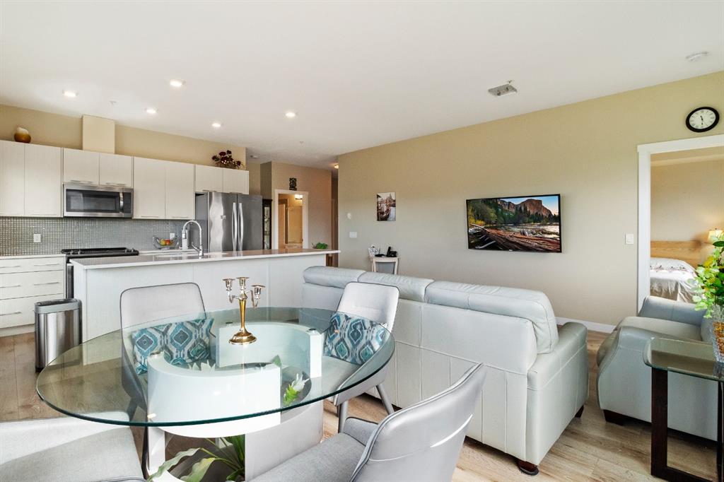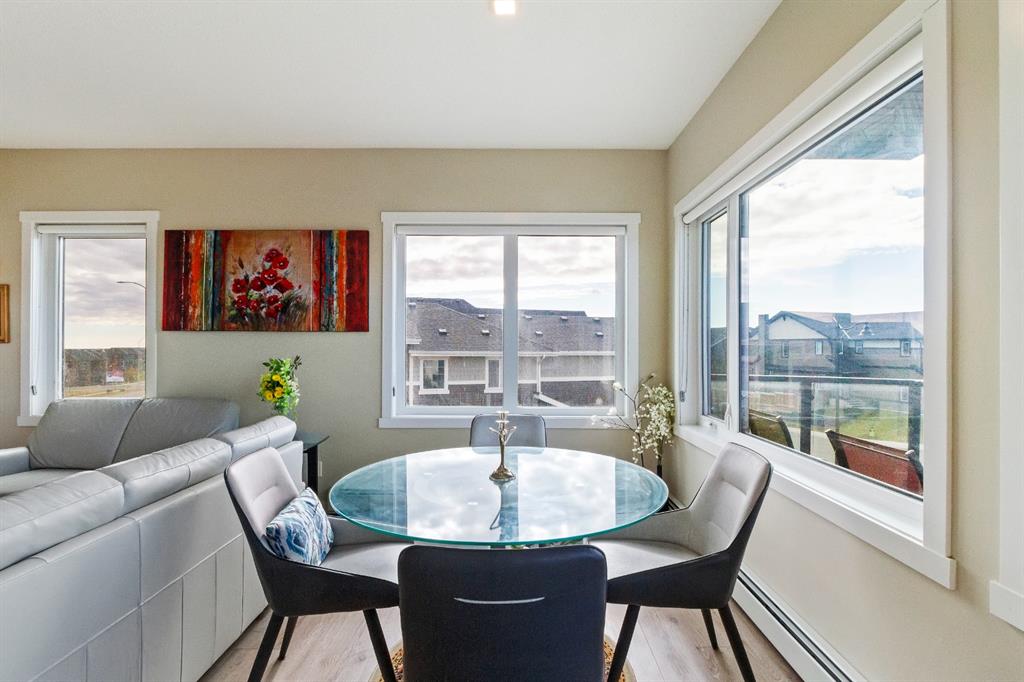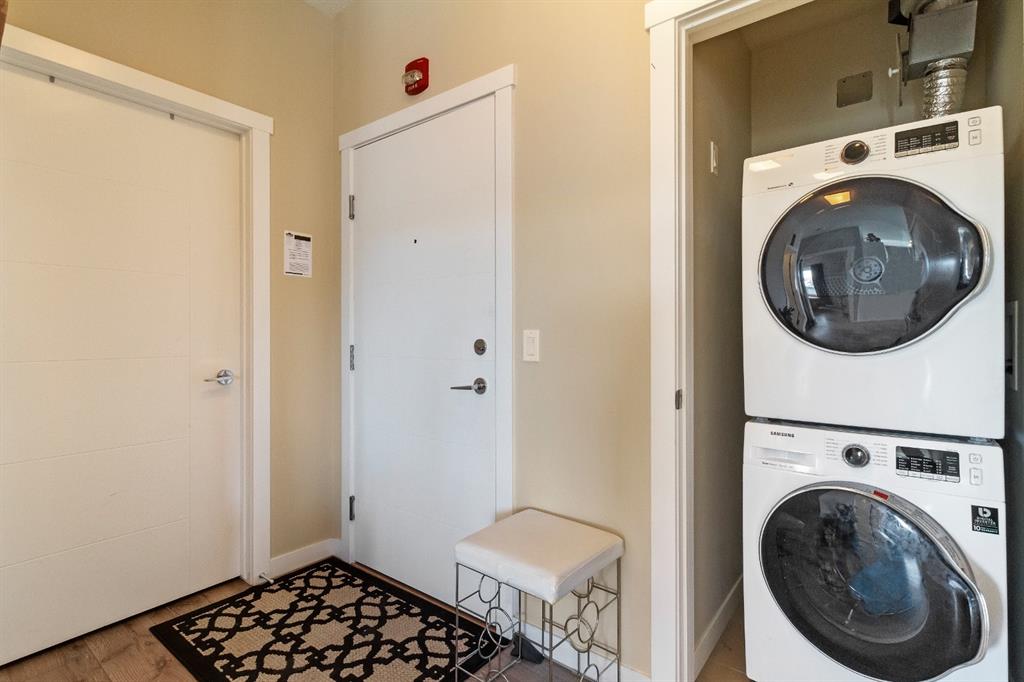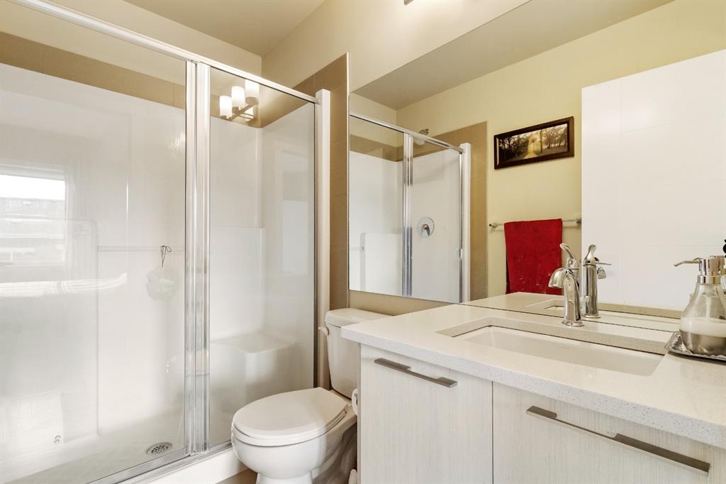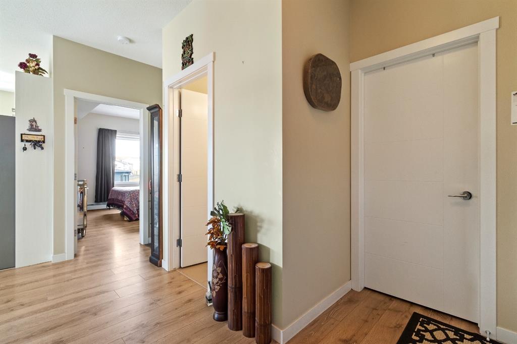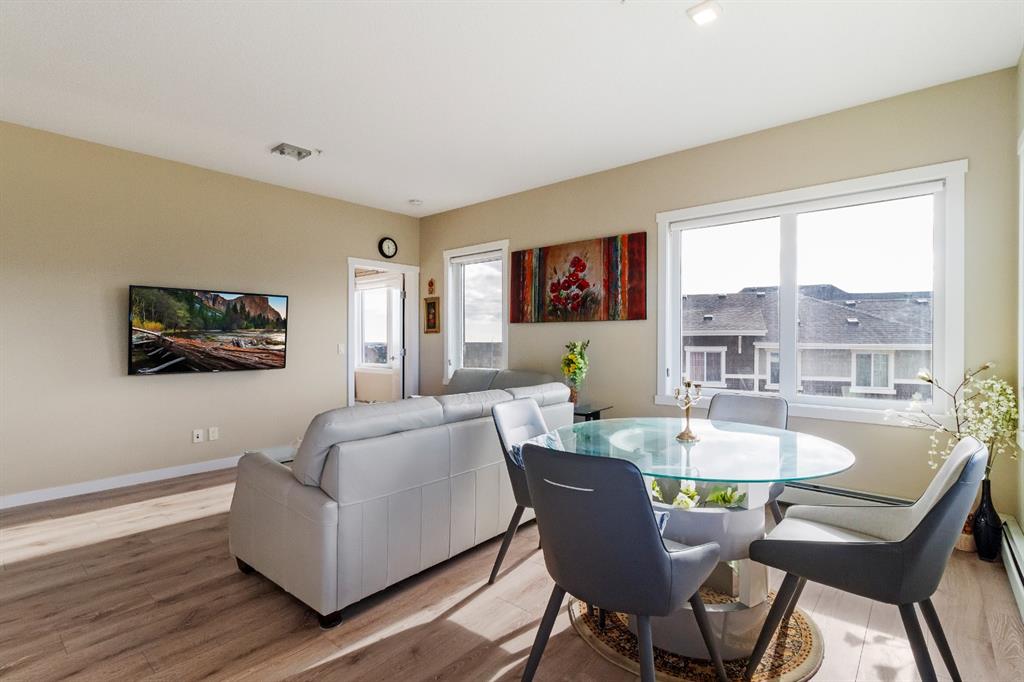 This beautiful and spacious 2 bedroom, CORNER UNIT condo features 9′ ceilings, 23′ private balcony, and VIEWS of the park! The open concept living area combines the spacious kitchen with detached island, dining room and living room with beautiful corner southwest facing windows. The owner’s suite, which can easily fit a king sized bed, features a sizeable walk in closet and private ensuite. To complete this beautiful home there is a large 2nd bedroom and ample storage in the in-suite storage room. There are no carpets in this unit as laminate floors throughout was the builder upgrade. The biggest difference this building has to offer is it is a one apartment building development meaning less dense compared to others which have 3+ buildings. Also, great location with easy access to Stoney Trail and close to Walmart, Costco, Good Life and many other shops and restaurants!