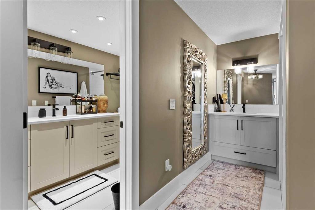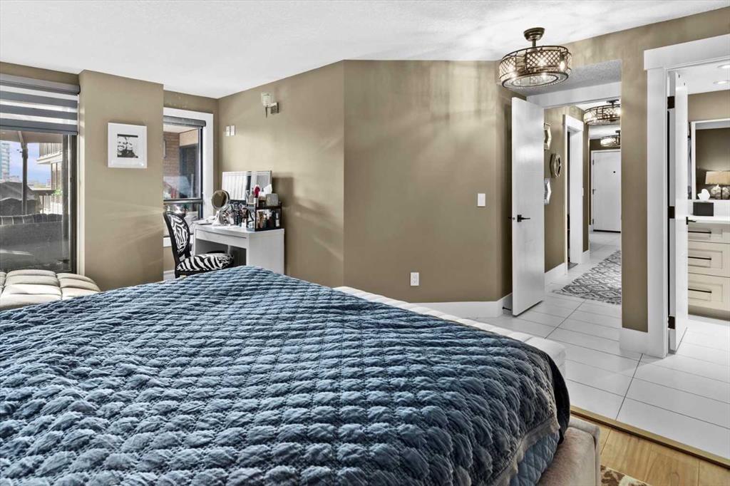 This exquisite open floor concept condominium with almost 1700 sq ft on a single level is a perfect choice for those wanting to downsize but not wanting to give up space. The condo is situated just one block from the Bow River with its amazing pathways and walking distance to downtown. This home has been extensively upgraded with many need to have options! Power Zebra blinds for those that want to keep the morning sun out, Triple head Daiken air conditioning that have a life time warranty with the annual mtc service contract, gas insert fireplace with remote controls and ventilator fan, custom built in cabinets in the large walk in closet, engineered hard wood flooring, Quartz counters through out. The bathrooms are updated, the foyer has an eye catching barn door closet, and the kitchen has plenty of room for those that like to entertain from the heart of your home. The decor is warm with custom paint throughout and vinyl wall paper to accent a few walls. The living room and dining area could be configured a number of ways to enhance the open area, snuggle in front of a picture perfect stone fireplace or to enjoy a large gathering around a sprawling table with friends and family. The concrete patio is a generous size and covered with non fading composite deck tile for comfort.