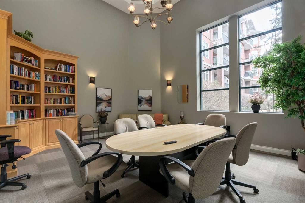 Welcome Home! Enjoy exceptional panoramic views of downtown Calgary from this stunning and stately third-floor condo, offering over 1,000 square feet of thoughtfully designed living space. Relax and unwind in the bright, open-concept living area featuring a cozy natural gas fireplace. Step outside to your private deck, which has a natural gas hookup perfect for year-round BBQing and entertaining. The well-appointed laundry room is conveniently located within the unit and includes a full-size washer, dryer and additional storage. The gourmet kitchen is designed for both function and style, showcasing stainless steel appliances, quartz countertops, and a two-tier breakfast bar. This home features two spacious bedrooms and two full bathrooms. The primary bedroom offers a private retreat with a walk-in closet and a luxurious ensuite complete with dual sinks, a separate shower and a full-size soaker Jacuzzi tub.The second bedroom includes a custom-built Murphy bed with an integrated desk which is ideal for guests, a home office or flexible living space. Additional upgrades include a built-in alarm and speaker system (8 speakers with dual volume controls), fresh paint in the bedrooms and living area (2026), a new washer (2025) and a new microwave (2026). The River Grande Estates complex is designed for comfortable living and is a community featuring a beautiful, peaceful courtyard, library, games and recreation room with a pool table, two underground car wash bays and indoor visitor parking. Parking is simple and secure with your titled, heated underground parking stall. This home also includes an assigned storage locker and bicycle storage is available for a small fee. Located in the highly desirable Erlton community, this amazing inner-city location offers parks, pathways and convenient access to downtown Calgary. You are within walking distance of the MNP Community & Sport Centre, featuring a pool, gym, and indoor track, as well as downtown, the Saddledome, Stampede Grounds, Calgary Tower and LRT access. Move-in ready. Call today to view your next home.