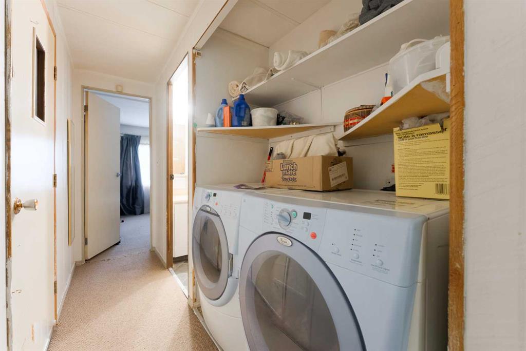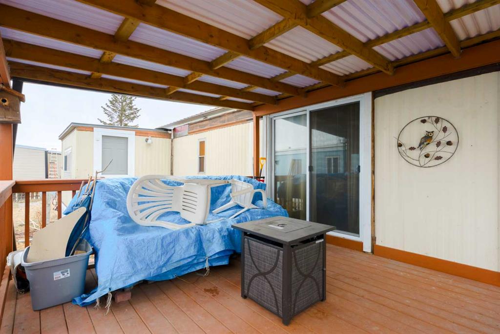 Affordable living without sharing walls! This 2 bedroom, 1 bath unit is located in a quiet street within the park. Your living room is the perfect spot to relax and enjoy the sunlight that floods in. The kitchen has plenty of storage with a large peninsula, complete with a lazy Susan in the corner cabinet, which makes it a breeze to cook in. While the adjacent dining room allows for a large table plus it has built in cabinets. The bathroom, has an easy access, low step oversized tub/shower combo. Both the primary and secondary bedrooms are large and bright. Plus there is a flex room that was once used as an office, and now is a large storage room but could also be used as a hobby room! With a large covered deck you’re able to enjoy the outdoors regardless of the weather. The large yard is fully fenced and boosts beautiful grass in the summer- perfect for your children or pets! The clubhouse offers a modern fitness room, a community kitchen, a games room with 8-ball pool table, a playground, and an outdoor BBQ area- available for all residents to use! Calgary Village is a quiet, family-friendly community, close to schools and shopping. Opportunity awaits for you to make this home your own!