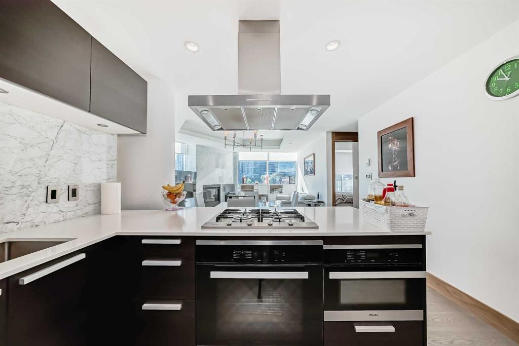 The Concord-Luxury on the River in Downtown Calgary! Stunning condo with breathtaking river views and a sleek open-concept layout. Gourmet kitchen with quartz countertops, POGGENPOHL cabinetry, and MIELE appliances. Elegant living area features hardwood floors and a marble-surround fireplace. Spa-inspired bath with marble walls/floors and in-floor heating. includes underground tandem parking and touchless car wash. Word-class amenities: 27/7concierge, finess centre, social lounge, and secure access. Steps to parks, pathways, and the best of downtown living.