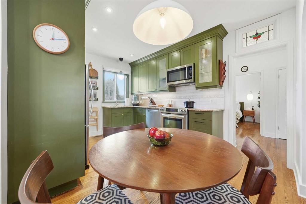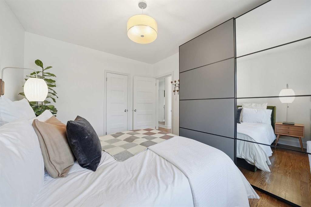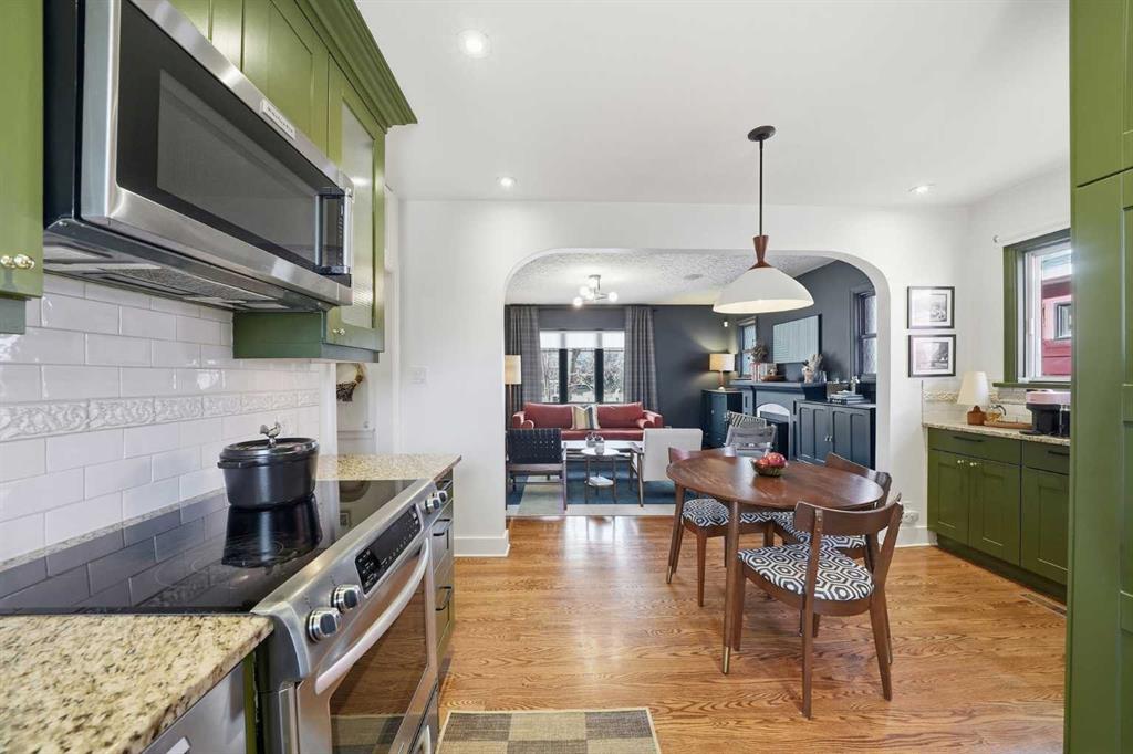 Modern luxury meets old world charm in this beautifully re-done 1949 character home. Situated on a LARGE 40’ x 119’ LOT, this UPPER MOUNT ROYAL BUNGALOW is perfectly located in the heart of inner-city Calgary. OWNER OCCUPIED and lovingly cherished, this home has been tastefully updated over the years. Many of the ORIGINAL CHARACTER FEATURES remain, making this a charming space full of history. The smartly laid out floor plan includes a total of 902 square feet above grade and a FULLY DEVELOPED BASEMENT, including 3 BEDROOMS AND 2 FULL BATHROOMS. Perfect for a professional couple or small family! Upon entering, you’ll find original oak hardwood flooring, professionally refinished in a dark wood tone, a light and bright living and dining area upgraded with colour drenched walls and modern lighting. The kitchen has been transformed to modern standards with beautiful shaker cabinetry, granite countertops, and a stainless steel appliance package including a new dishwasher. Proceed through classic arched doorways to the bathroom, updated with a marble countertop and refinished wood vanity, plus dual sinks. Completing the main floor are two generously sized bedrooms. The basement, completed in 2013 with permits, features a large recreation space – full of light from four windows. There is a third bedroom and a full bathroom – a great guest space. Heading outside into the landscaped yard, you’ll find a large lawn, perfect for the kids or pets to play. Completing the yard is the sturdy storage shed, single garage, plus a two car parking pad – plenty of off-street parking for visitors! Upgrades include: newer roof approximately 2018, furnace 2021, hot water tank 2021, A/C 2021, dryer 2025, Hunter Douglas blinds 2021, and interior paint. With a park and library right across the street, easy access into the heart of downtown via 14th street, and situated in the William Reid School catchment zone – this is an excellent purchase at only $699,900! Tired of builder basic homes? Own a piece of history in this adorable, craftsman-made, classic bungalow!