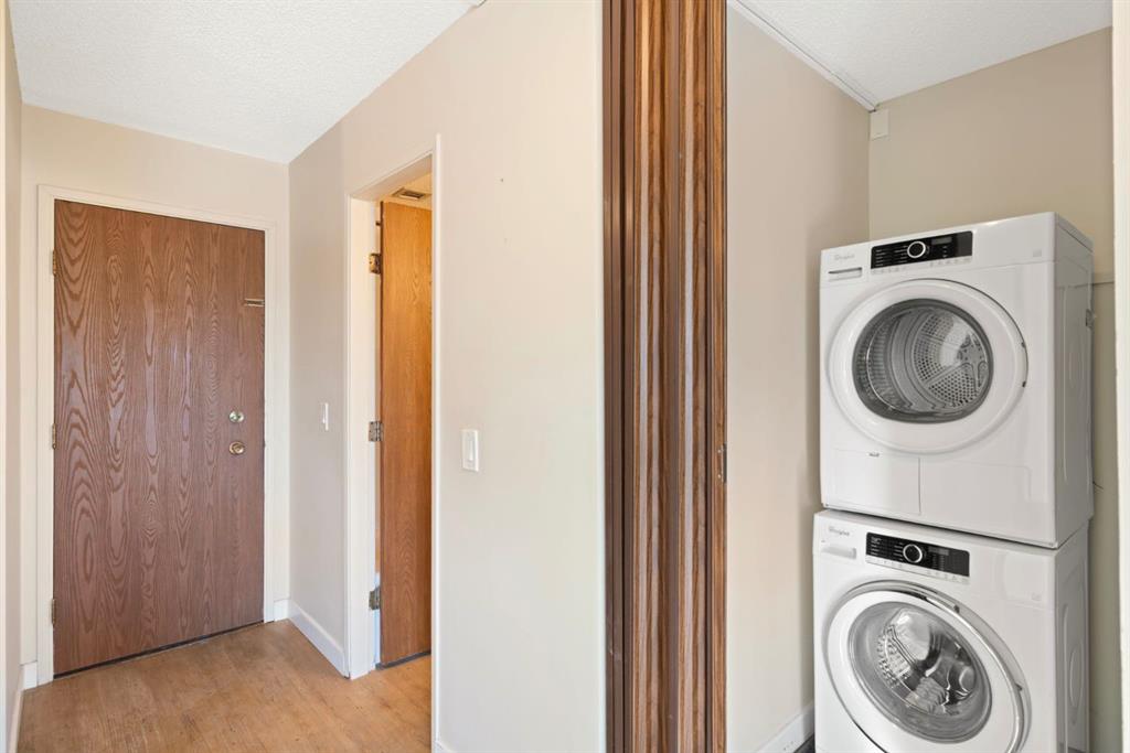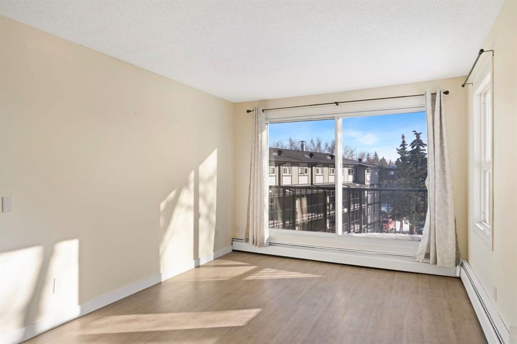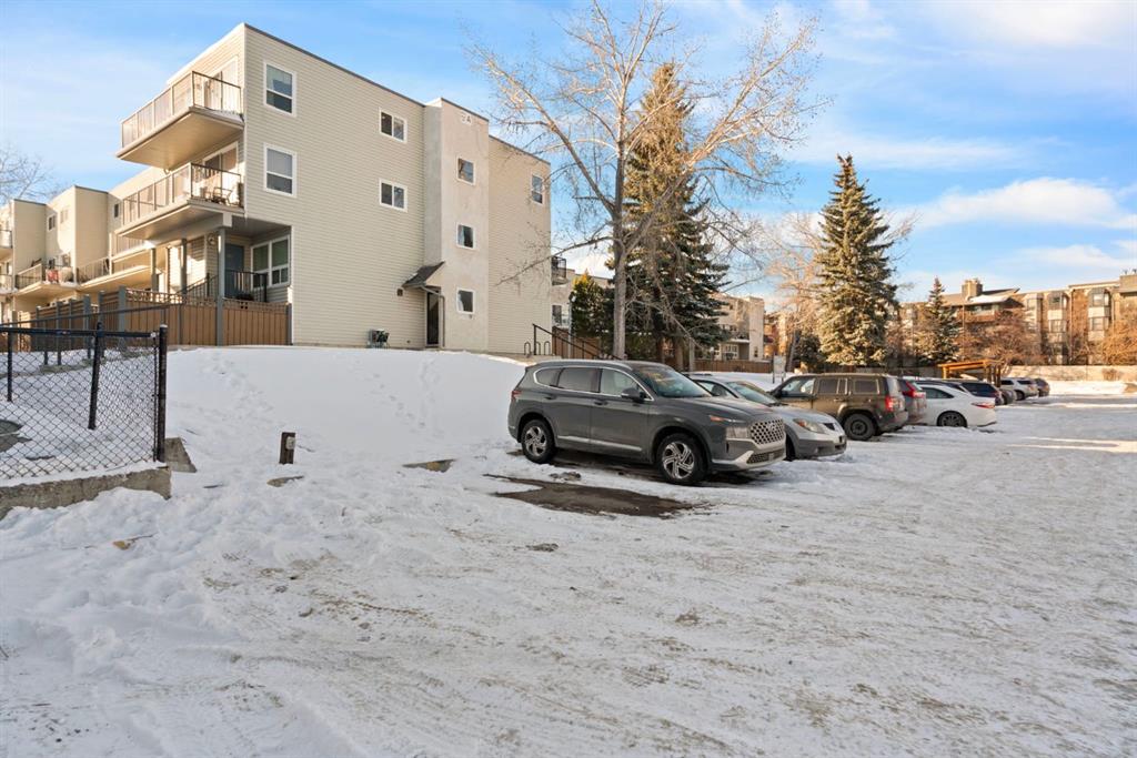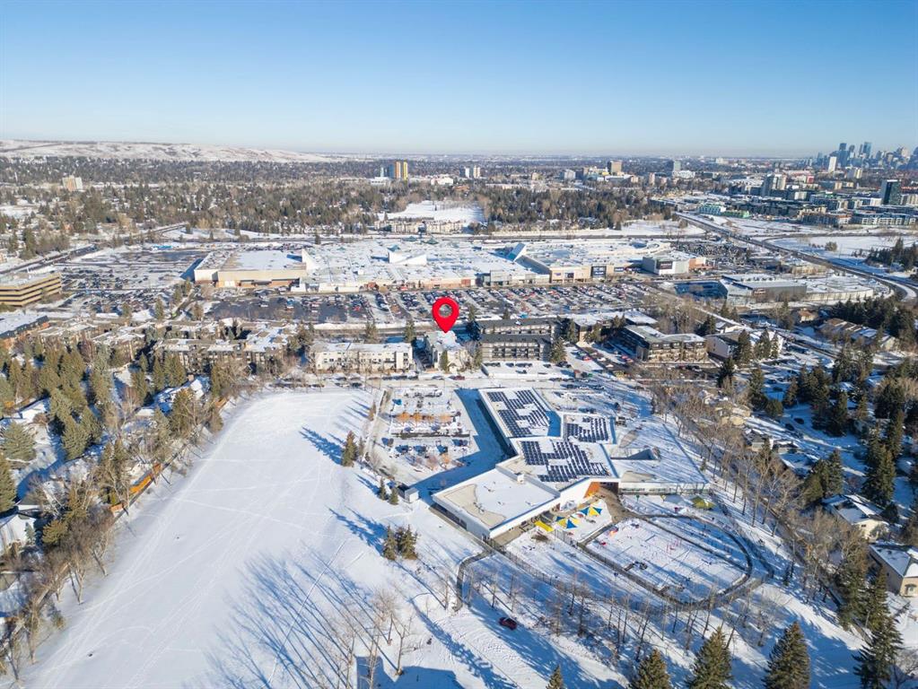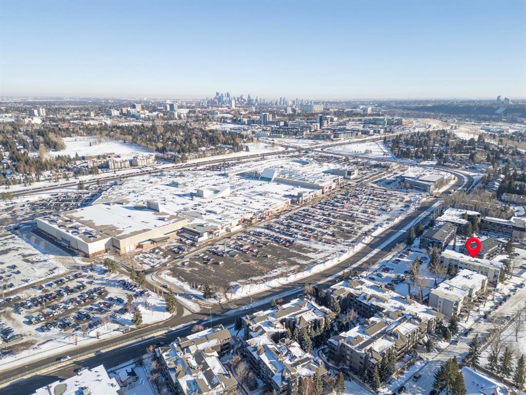 TOP FLOOR. SUN-FILLED. WALK EVERYWHERE. LOCATION LOCATION LOCATION!!! Market Mall is ACROSS the Street = groceries, shops, restaurants, services, coffee shops, theatres. 5 minute drive to U of C or walk in 25 minutes or 2 minute walk to bus stop = arrival at U of C in 10 minutes! Bow River Pathway is a block away – extensive, year-round paved and multi-use trails for walking, running and cycling! Rare opportunity to own in this quiet, well-kept building. NO sales have occurred here since 2024 – makes this a great opportunity to find the perfect place to live – and a solid stable community to live in. This BRIGHT – CORNER 1-bedroom, 1-bathroom unit sits on the TOP floor, meaning no one above you. Exceptional East-South-West natural light throughout the day. Enjoy a large private SOUTH facing balcony off the living room, unobstructed sunshine into both the open concept living/dining space and the bedroom. PLUS enjoy mountain views from your kitchen window! The layout offers generous in-suite storage (bikes, boxes, or use as pocket office area) and ample closet space. IN SUITE LAUNDRY. This unit is VACANT and move-in ready. LOW condo fees that include assigned PARKING, HEAT & WATER – keep ownership affordable. This is an exceptional opportunity for a first-time buyer, someone looking for a quiet haven in the city or an investor ( NO Short Term rentals under 28 days allowed. ) Have a PET?! Board approval necessary but no weight, breed, size restrictions. Own for less than many rental payments – while building equity in one of Calgary’s most connected communities! Quiet building. Top floor privacy. Sunshine all day. Location that works for real life. Faces Christine Meikle School – so many days/months of the year – you have no neighbours! Plus the road is blocked right in front of this unit (can’t drive straight thru on 50 St) – so LIMITED traffic noise below! Perfect QUIET space to study or relax. Varsity gives you inner-city access without inner-city chaos! Close to major roadways. Airport is 25 mins away and drive Downtown in 10 mins (without traffic of course!) Get out of the city quickly – Canmore is an hour away! Mature trees, strong schools, walkability and long-term value. Varisty is one of Calgary’s most popular communities. Some photos are virtually staged. Call today to view – or book a showing!