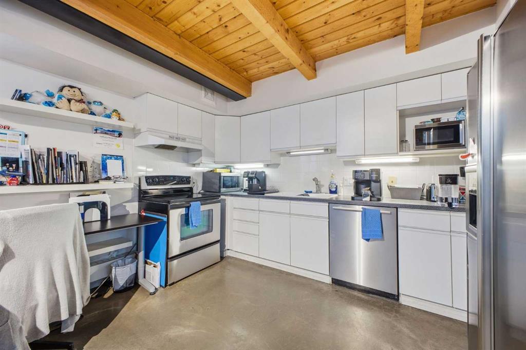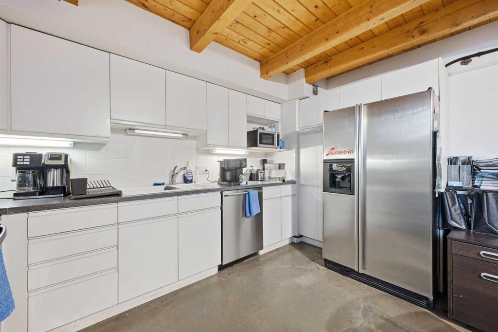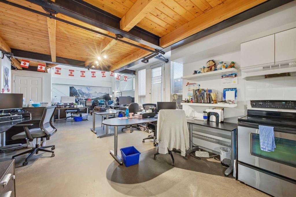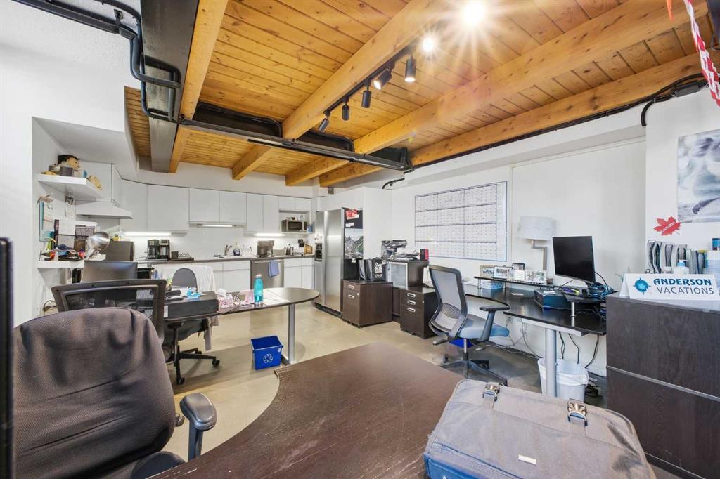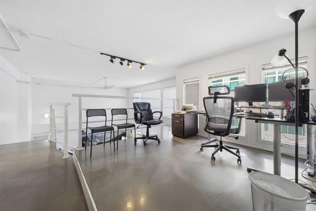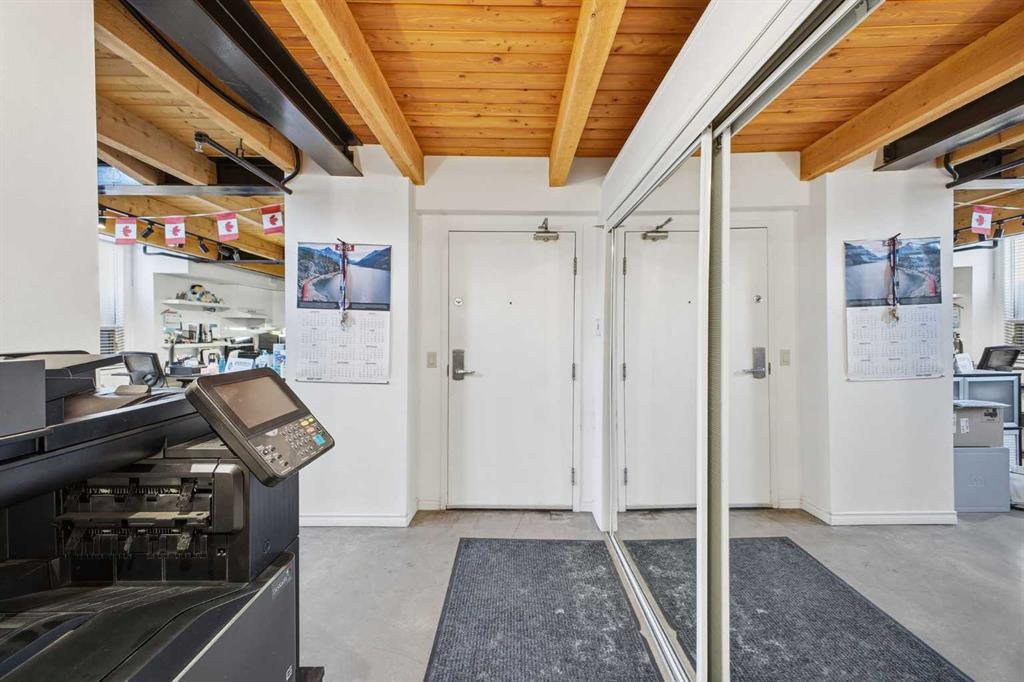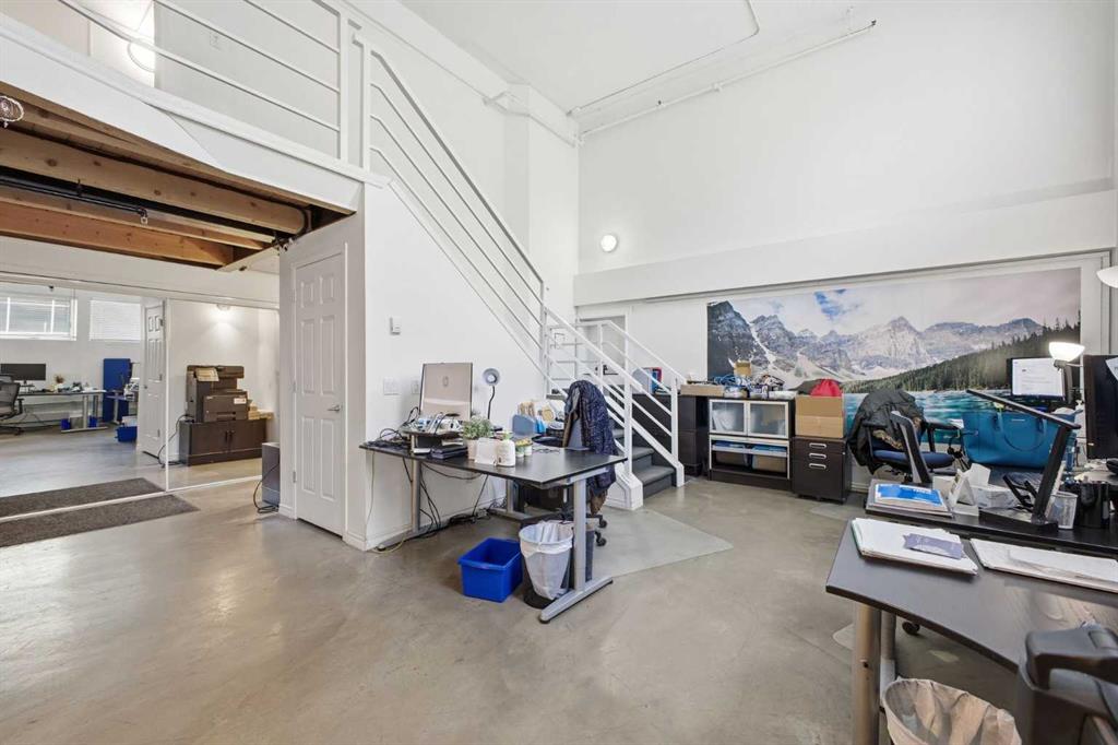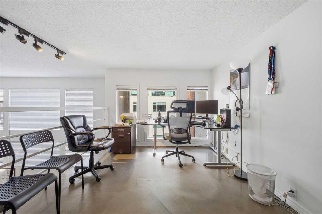 Have you ever dreamed of living or working in Manhattan? This is Calgary’s answer to that iconic urban lifestyle. With flexible zoning that permits both residential and commercial use, this exceptional two storey loft can be your home, your office, or a seamless blend of both. Currently configured as office space, the unit offers soaring 16’ ceilings and over 1,200 sq ft of living space that can easily be reimagined into a sophisticated loft residence. The main level features an expansive living/dining area with an industrial aesthetic, open to the kitchen for effortless flow. A convenient 2 piece powder room and generous storage complete this level. A striking staircase leads to the lofted upper floor, where you’ll find a spacious bedroom, a versatile den or office, and a 5 piece bath. Units 301 and 303 are being sold separately; however, if purchased together, they can be seamlessly connected to create a truly spectacular space. If only one unit is purchased, the access point between them will be professionally sealed. Additional highlights include in suite laundry, a west-facing balcony, one assigned parking stall, and one assigned storage locker. Set in the heart of Calgary’s premier dining and entertainment district—and just a short walk to the downtown core—this location delivers the ultimate urban convenience and energy.