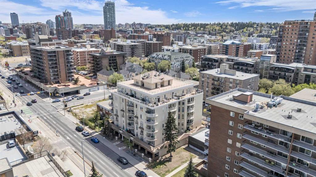 Step inside this stunning corner suite in the iconic Monaco building in Calgary’s trendy Beltline district, where timeless Mediterranean-inspired architecture meets modern urban living. Designed with meticulous attention to detail, this residence features arched walls, sculpted ceilings, and grand crown moulding, creating a sense of sophistication and style throughout. Expansive arched windows invite natural light to pour into the open living space, highlighting the impressive 9 ft ceilings and enhancing the feeling of spaciousness. The architectural allure continues with French doors leading to a massive private balcony that spans the entire corner of the unit – perfect for outdoor entertaining or enjoying city views. Inside, the kitchen exudes elegance with maple cabinetry, centre island, stainless steel appliances, seamlessly connecting to the main living area, complete with a gas fireplace with a modern niche for storage. The primary suite is a serene retreat, featuring a luxurious Jacuzzi tub and custom finishes, while the second bedroom offers ample space and versatility. Building amenities include a rooftop sun deck, bike room storage, and visitor parking, all within the security of solid concrete construction. Located in the heart of the Beltline district, you’re steps away from the Bow River pathways, Sunalta and Kirby LRT stations, a few blocks to Bow River pathways17th Avenue’s eclectic shops and cafes, and the downtown core – all wrapped in architectural charm and sophisticated design.