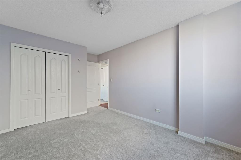 This condo offers two spacious bedrooms, each with large windows and generous closet space, along with a full bathroom finished with slate tile details and ample storage. The layout is perfect for roommates, a home office setup, or a guest room.