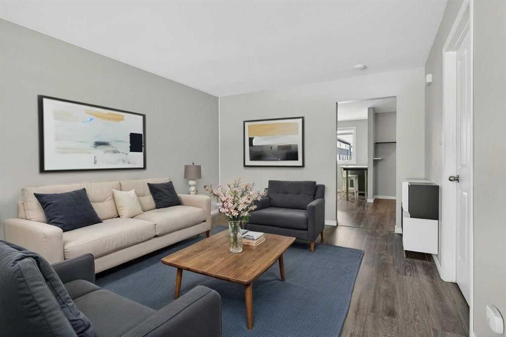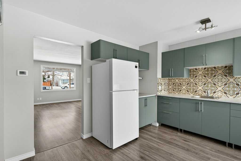Step inside to discover a bright, open-concept layout with updated flooring throughout and a fully renovated kitchen complete with brand-new appliances, including a fridge and range. The kitchen seamlessly connects to a versatile flex space—ideal for a dining area, home office, or additional living space to suit your needs. The spacious great room opens onto greenspace, perfect for relaxing or entertaining. Upstairs, you’ll find a generous primary bedroom, two additional well-sized bedrooms, and a fully updated bathroom. Primary bedroom offers a large East facing patio. The unfinished basement provides ample storage, laundry space, and future development potential to add even more living area. A unique bonus in the basement is the soundproofed room—an ideal setup for working from home, gaming, or creative musical pursuits. Enjoy the quiet setting with a concrete patio off the rear entrance and beautifully maintained green space throughout the complex. An oversized assigned parking stall plus additional street parking adds to the convenience. Ideally located close to schools, parks, shopping, and transit, with quick access to 16th Avenue, Deerfoot Trail, and downtown Calgary—this is an excellent opportunity to own in a well-connected and established area. Some photos have been digitally staged.