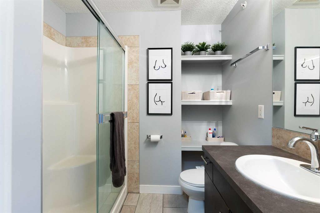 Welcome to this beautifully appointed 2-bedroom, 2-bathroom condo in one of Calgary’s most sought-after inner-city locations. Perfectly situated in the heart of Bankview on 14 Street SW, this home places you just steps from the vibrant shops, restaurants, cafés, and everyday amenities of both Marda Loop and 17th Avenue SW. Located on the third floor, this west-facing unit offers beautiful views over the community of Bankview and captures incredible natural light throughout the day. Enjoy stunning sunsets from your private balcony, or take advantage of the exceptional rooftop common patio, where multiple gathering spaces, a cozy fireplace, and breathtaking views of both the western skyline and downtown Calgary at night create the perfect setting for relaxing or entertaining. Residents also have access to seasonal community garden boxes available for reservation. Inside, the thoughtfully designed open-concept layout seamlessly connects the kitchen, dining, and living areas, creating an inviting space for both everyday living and hosting guests. The kitchen is nicely finished with ample cabinetry and workspace, while the living room features a custom entertainment built-in for added style and functionality. The spacious primary bedroom includes a walk-in closet and a private 4-piece ensuite. A well-sized second bedroom and full additional bathroom provide excellent flexibility for guests, roommates, or a home office setup. West-facing windows allow light to pour into the unit, enhancing the bright and airy feel throughout, while generous in-suite storage adds everyday convenience. Additional highlights include in-suite laundry, a separate storage locker outside of the parkade, and secure underground parking. The building is also currently offering EV charger installations for owners wishing to upgrade their parking stall, along with additional leased parking stalls available for $125/month. An exceptional opportunity to enjoy stylish inner-city living in an unbeatable location.