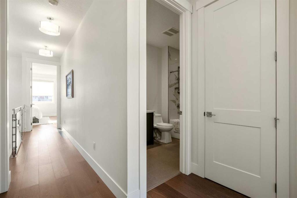 EXCLUSIVE HOME IN TUXEDO PARK | SHOW HOME STATUS | GREAT LOCATION | TONS OF UPGRADES + MUCH MORE! This home has been well maintained & upgraded to mirror a Show Home level of integrity + presents a rare opportunity to own a high end property in an excellent inner City location. Not far from amenities, schools & major routes, yet tucked into the vibrant & established neighbourhood of Tuxedo Park, this property offers the best of City living. This impressive home extends to 1,909 sq ft above grade, has been highly upgraded & delivers a fully developed basement (an extra 831 sq ft). The 4 Bedrooms & 3.5 Bathrooms will undoubtedly suit you & your family, delivering space, comfort & a flowing design throughout. The stucco/brick exterior creates a striking curb appeal that will hone the quality of craftsmanship + your pride of ownership. Inside the open concept main floor vibrantly flows & soars with 10 foot ceilings, wide plank oak hardwood flooring & invites plenty of natural light through large windows, making it ideal for both everyday living & entertaining. The kitchen is the true heart of the house, featuring a waterfall countertop, a built-in wall oven, a built-in microwave, a gas range cooktop + ample cabinetry for storage. Built-in shelving throughout the home adds both style & functionality, while the upgraded 10 mil glass railing enhances the vibe & creates a more modern design. Other notable items to mention: The primary ensuite offers a private retreat, with a spa inspired demeanour, featuring in-floor heating & a calming, luxurious feel. The basement is fully developed with an open media/rec room that is perfect for watching the big game- This area is ideal for entertaining, relaxing or hosting family/friends. Soak up the sun while enjoying your morning coffee in this south facing backyard. The 20×20 detached garage is heated, providing convenience over the colder months + the interior of the home is temperature controlled with A/C during Calgary’s hotter months. The high spec party wall exceeds building code requirements, contributing enhanced soundproofing & privacy with the adjacent unit. Did I mention there is 3 gas fireplaces, 1 for every level! It is safe to say this property is best appreciated in person. Come take a look & experience everything it has to offer!