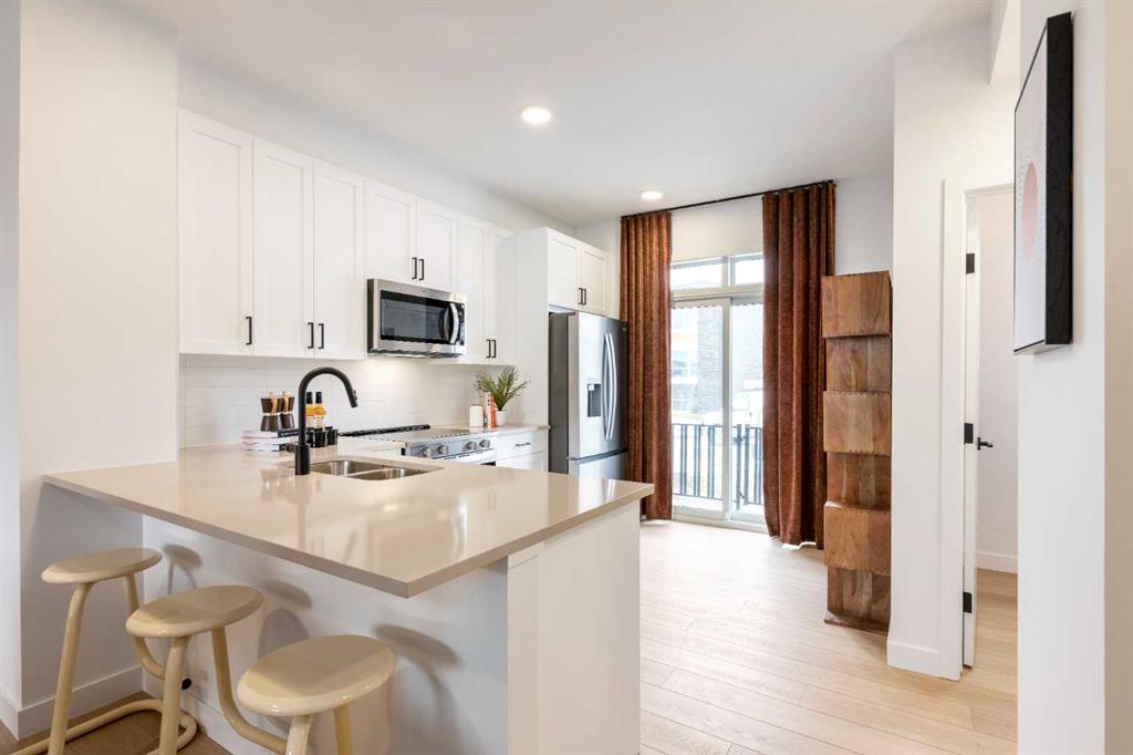ALPINE PARK IS ONE OF THOSE COMMUNITIES PEOPLE TALK ABOUT AFTER THEY’VE WALKED IT. Wide boulevards, architecture that actually has personality, and a growing village centre designed to bring daily life close to home. If you’ve been watching it take shape and waiting for the right opportunity to get in, this THREE-STOREY Jasmine model at 303, 437 Alpine Avenue SW deserves a closer look.