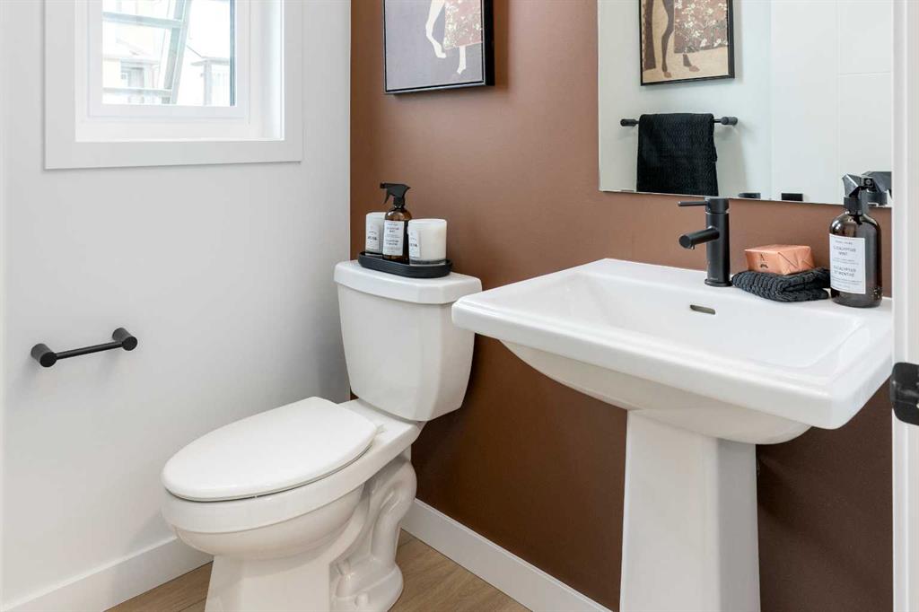 The top floor keeps the private spaces thoughtfully separated. The primary bedroom includes a walk-in closet and a streamlined three-piece ensuite, while the second bedroom also enjoys its own walk-in closet and convenient access to another full bathroom. A FLEXIBLE DEN sits between the bedrooms—ideal for a home office, reading nook, workout space, or nursery—and the laundry room is right where you want it: upstairs, close to the bedrooms.