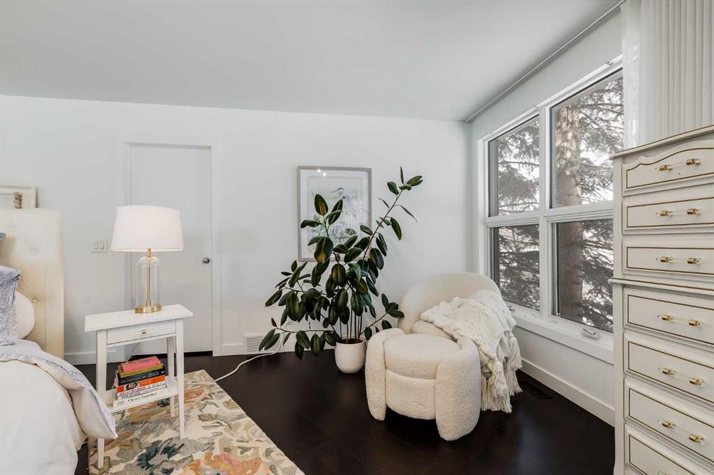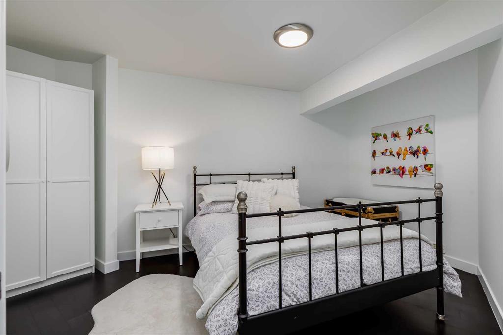 This distinctive end-unit townhouse in the sought-after community of Inglewood offers a rare opportunity for those seeking a flexible live/work environment, with the ability to operate a business subject to board approval, or simply enjoy a unique place to call home. With over 2,100 square feet of developed living space, this is the largest residence within an exclusive 12-unit complex, tucked along a quiet, tree-lined street just steps from the neighborhood’s well-known shops, restaurants, and amenities. The exterior presents a modern blend of stucco and corrugated metal siding, complemented by oversized, energy-efficient reflective windows. Inside, over $80,000 in renovations enhance both form and function. The main floor opens with a generous entryway and continues into an open-concept layout grounded by wide-plank vinyl flooring. Soaring 18-foot ceilings, expansive windows, and full-height drapery bring in natural light and add dimension, while subtle industrial elements, including exposed steel features, contribute to the home’s architectural character. The kitchen is both practical and refined, featuring black cabinetry, granite countertops, a stylish backsplash, stainless steel appliances, and a large island with seating. Adjacent dining and living areas provide a comfortable setting for everyday living or hosting, with designer lighting over the dining space and a gas fireplace anchoring the living room. Full-height windows frame views of the surrounding greenspace and park, creating a strong connection to the outdoors. A two-piece powder room completes this level. Upstairs, the entire loft is dedicated to the primary retreat, offering a private and spacious layout with cork flooring underfoot, a large walk-in closet, and a five-piece ensuite with dual sinks, a deep soaker tub, and an oversized glass-enclosed shower with bench seating. The upper balcony extends the living space outdoors, with ample room for seating and elevated views through the surrounding trees. The fully developed basement adds further flexibility with a spacious recreation area suited for a media room, office, or fitness space. A full wall of built-in shelving provides both storage and display, while additional pot lighting ensures the space is well-lit into the evening. A spacious den and a three-piece bathroom offer privacy for guests or extended use, along with additional storage. Outside, the property backs directly onto greenspace and a park, creating a natural extension of the home’s living space. A private yard offers room for a BBQ and easy access to outdoor areas. Park conveniently in any of the ample stalls at your front door or in a titled stall within the heated garage. Located in one of Calgary’s most established inner-city neighborhoods, this home is within walking distance to boutique shopping, dining, cafés, and local breweries. The Bow River pathways are just minutes away, and you’ll enjoy quick access to downtown by car or public transit. Check out the 3D Tour!