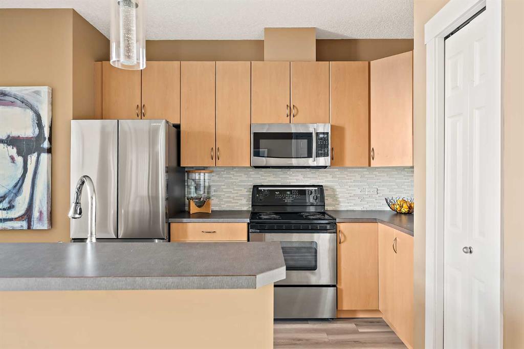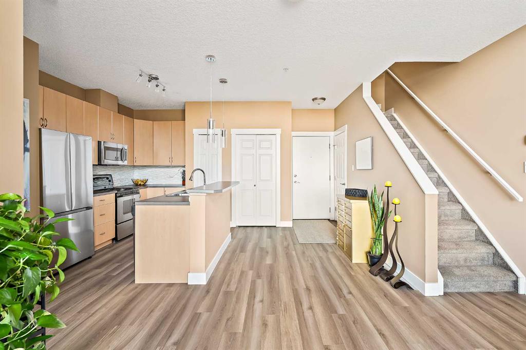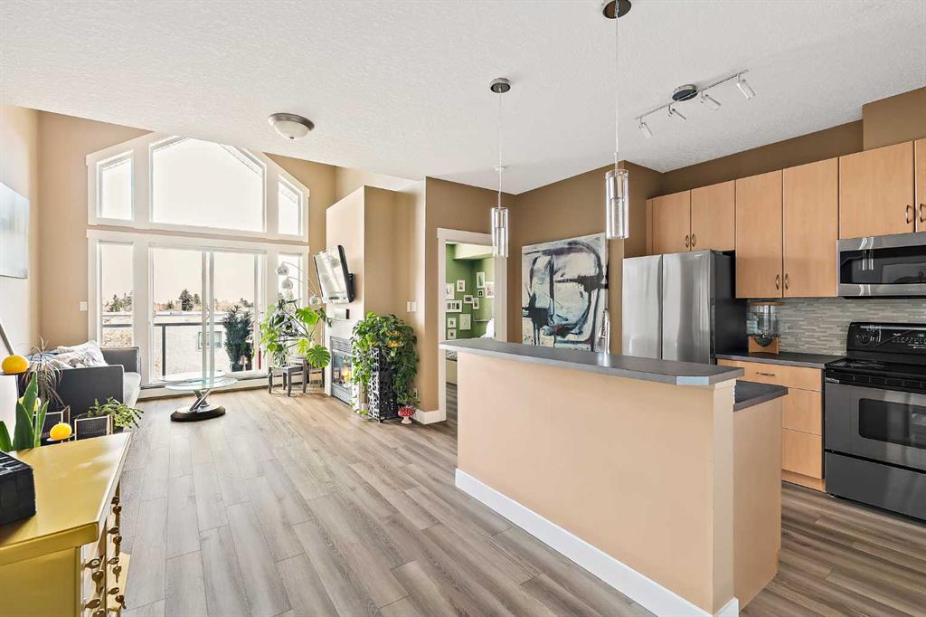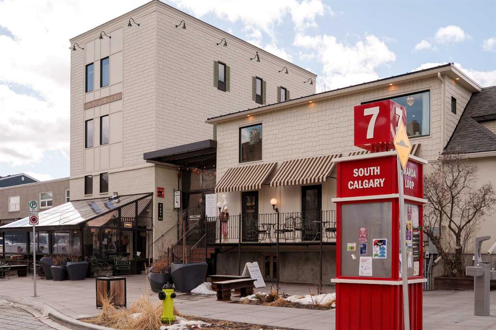 Welcome to loft living at its finest in the heart of Altadore. Perched on the top floor of the sought-after Copa Complex, this spacious 2-bedroom, 2-bathroom loft offers 1,162 sqft of elevated urban style, perfectly blending comfort, character, and an unbeatable location. Step inside and feel the difference soaring vaulted ceilings make, allowing natural light to pour in all day long and create an airy, open atmosphere. The main living space is warm and inviting, complete with a cozy gas fireplace, while the thoughtfully updated kitchen shines with new lighting, under-cabinet illumination, a new fridge, and new dishwasher, perfect for both everyday living and entertaining. The lofted upper level adds versatility and charm, featuring decorative wall cabinetry, making it an ideal space for a home office, lounge, or creative retreat. Both bathrooms are equipped with automatic fans, and practical upgrades like closet storage shelving and patio deck flooring enhance everyday convenience. Step outside to your private balcony and soak in the vibrant energy of Marda Loop… just steps from it all. Enjoy unmatched walkability with Avenue Thirty Four just blocks away, home to local favourites like Dopo, Penny Crown, Tat’s Treats, and Avitus Wine Bar, along with trendy boutiques, cafes, and more. Nature lovers will appreciate being within walking distance to River Park, Sandy Beach, and scenic green spaces. This pet-friendly (with board approval), well-managed building also offers heated underground parking with your own single stall, plus underground visitor parking for guests. As one of the largest units in the complex, this is a rare opportunity to own a standout loft in one of Calgary’s most dynamic communities. This is urban living done right: stylish, spacious, and right in the action.