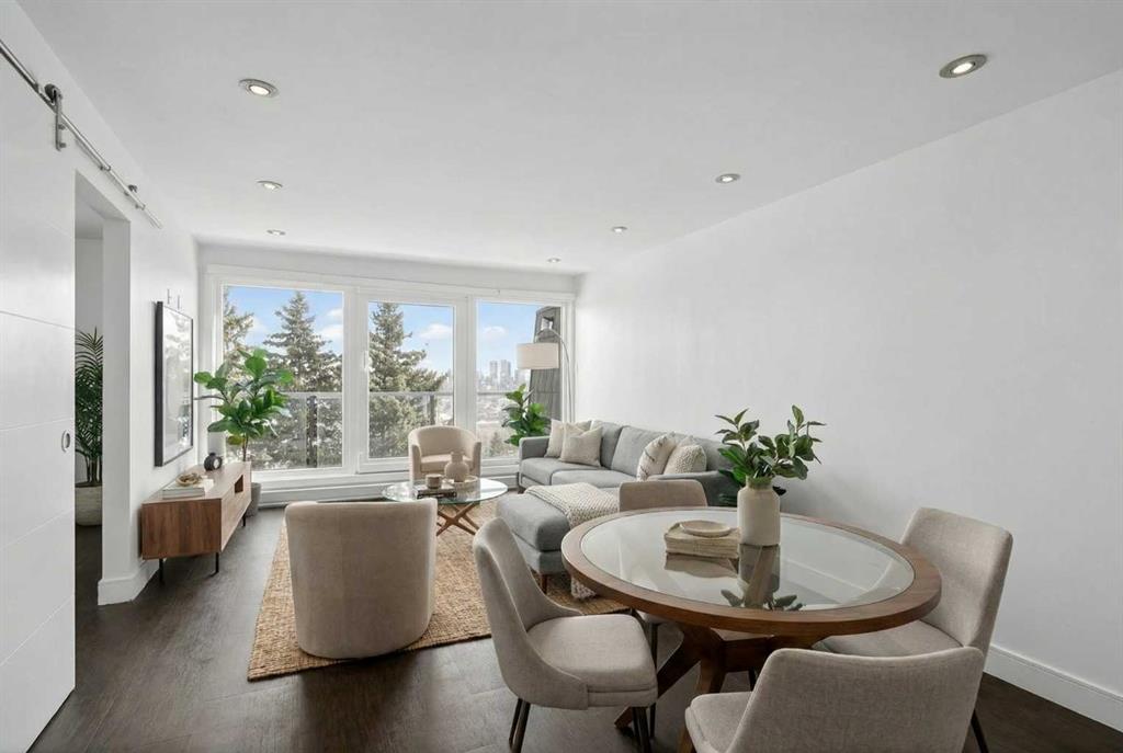 Welcome to Spruce Cliff, one of Calgary’s most scenic and desirable communities. This home truly has it all. FULLY RENOVATED to the highest level, walking in you are greeted with a completely open floor plan with laminate floors that span throughout. Your chef inspired kitchen offers quartz counter tops, high end stainless steep appliances, gorgeous cabinetry and drawers as well as a ton of lighting. Your living room is very large and flows from your kitchen and out to your east facing balcony with AMAZING DOWNTOWN VIEW and the quiet tranquilness of backing on to EDWORTHY PARK with nature at your back door. The primary bedroom is huge and give you space for a king size bed along with additional bedroom furniture. The second bedroom is also a great size and is just adjacent to your spa style renovated bathroom. This unit boasts IN-UNIT FULL SIZE LAUNDRY which is rare for the complex as well as an assigned parking stall and indoor storage locker. If you want to wake up to morning coffee on your balcony with the birds and the deer or have a glass of wine with expansive night time city views, this unit is for you. Take a walk from your back door all right to the pathways through the park and down to the river. Do not miss this chance to make it yours!