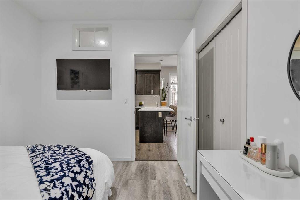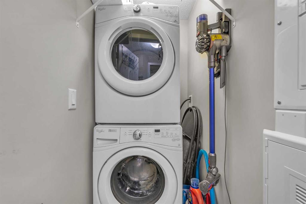 Welcome to this BRIGHT CORNER UNIT in the heart of New Brighton, offering fantastic value in a well established community. This inviting TWO BEDROOM CONDO features over 600 SQ FT OF LIVING SPACE, with 9FT CEILINGS and large windows that fill the home with natural light. The kitchen is beautifully finished with QUARTZ COUNTERTOPS, DARK CABINETRY, and NEWER STAINLESS STEEL APPLIANCES, including a HIGH END FRIDGE, NEWER STOVE, and a space saving over the range microwave. A peninsula provides extra prep space and a convenient eating bar, making it perfect for both everyday living and entertaining. The living area opens onto a SUNNY COVERED BALCONY WITH BBQ GAS LINE, ideal for relaxing or hosting in warmer months while enjoying a quiet outlook over the complex. Both bedrooms are SIMILAR IN SIZE, each with LAMINATE FLOORING and SPACIOUS CLOSETS, and are thoughtfully positioned for privacy. The FOUR PIECE BATHROOM continues the quartz finishes and includes a DEEP TUB AND SHOWER COMBO. Additional features include IN SUITE LAUNDRY, NO CARPET, LAMINATE AND TILE FLOORS THROUGHOUT, ASSIGNED SURFACE PARKING STALL 58, STORAGE LOCKER 9 LOCATED IN THE PARKADE, and access to a BICYCLE STORAGE ROOM. This WELL MANAGED COMPLEX WITH LOW CONDO FEES is ideally located close to PARKS, SCHOOLS, SHOPPING AT 130 AVE AND HIGH STREET, TRANSIT, and with quick access to DEERFOOT AND STONEY TRAIL. A perfect opportunity for FIRST TIME BUYERS, INVESTORS, or anyone looking for a bright, low maintenance home in a great community. Residents also enjoy exclusive access to the NEW BRIGHTON RESIDENTS ASSOCIATION, offering YEAR ROUND AMENITIES such as a SPLASH PARK, TENNIS COURTS, VOLLEYBALL, a HOCKEY RINK, FITNESS CLASSES, and a wide range of COMMUNITY EVENTS. This home SHOWS BEAUTIFULLY and is PET FRIENDLY WITH BOARD APPROVAL. BOOK YOUR PRIVATE SHOWING TODAY.