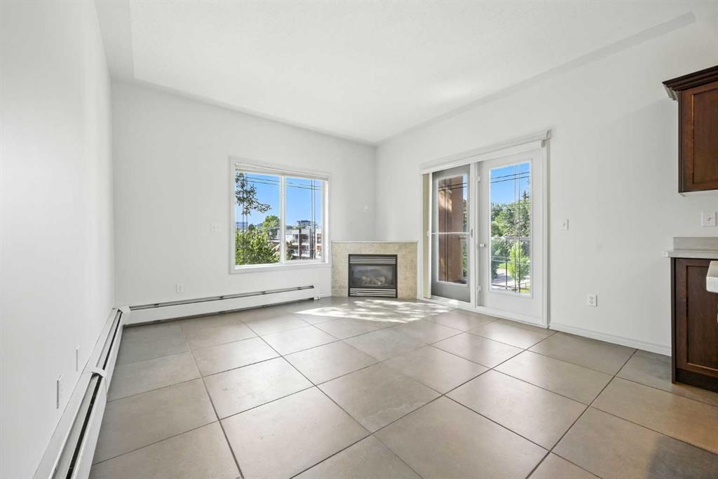 Wonderful, Quiet, Bridgeland location. A 5 Min walk to C-Train, river paths and downtown or hop on the bike path that runs right in front of the building. 2 bedroom, 2 bathroom 3rd floor penthouse corner unit with almost 900 sq ft of living space and a titled underground parking stall with room for storage. This apartment is a bright and cheery space that is freshly painted in light tones throughout, helping the large windows provide lots of natural light. Kitchen is highlighted by dark stained maple cabinets and stainless-steel countertops. An island with pendant lights and a black appliance package gives the entire apartment a luxurious feel. The Livingroom has a corner gas fireplace with a mantle, a big west facing window and French doors that open to the balcony where you will find space to entertain and a gas line for your BBQ. The main living space has 2×2 ceramic tile throughout. The primary is equipped with a walk-in closet and 4-piece ensuite bath. There is an additional 4-piece bath off the Livingroom. The second bedroom has a large west window. There is an in-suite laundry with stacking washer and dryer. This 3rd floor walkup is an idea starter home and will make a great investment. Some photos are virtually staged to highlight decorating options.