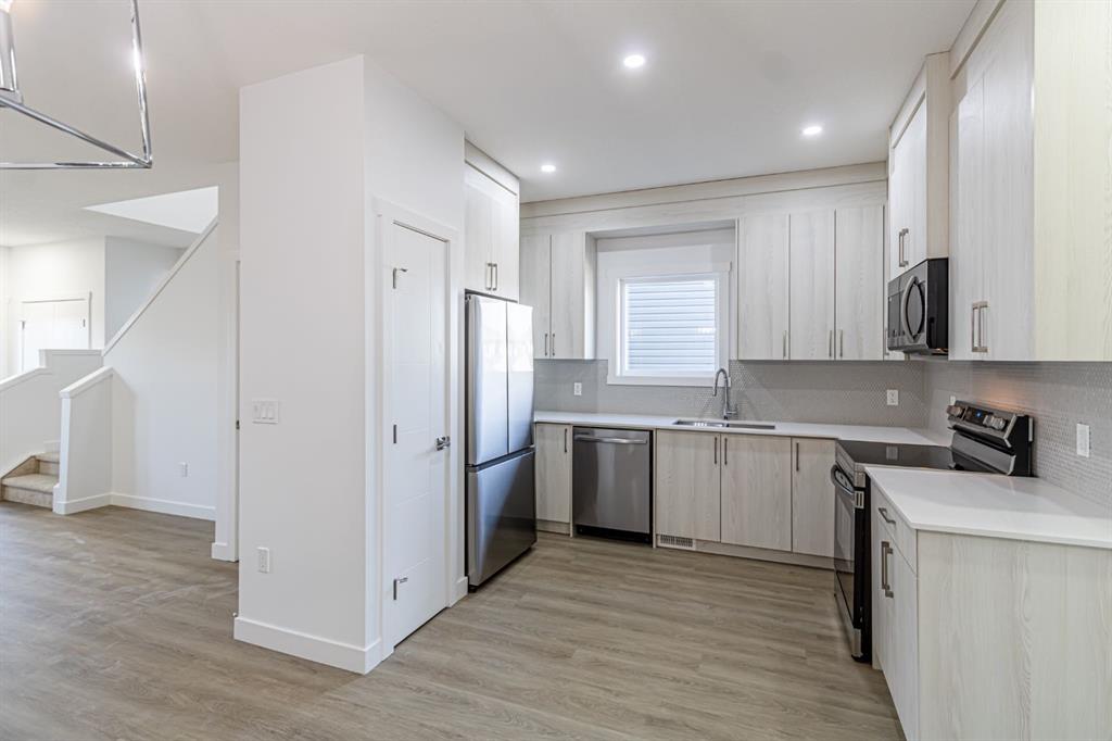 This NEWLY built upgraded semi-detached home in Northeast Community ,Offering 4 BEDROOM and 3 FULL bathrooms, this home includes a MAIN floor bedroom with a full ensuite, ideal for elderly family members, guests, or multigenerational living. All bathrooms are finished with granite countertops and under mount sinks, reflecting quality craftsmanship throughout. This thoughtfully designed home features an open-concept main floor highlighted by a sleek contemporary kitchen with a gas line to the range, ceiling-height cabinetry offering abundant storage, and a convenient pantry. The cozy living room creating the perfect space for relaxing or entertaining. Upstairs, retreat to the spacious primary bedroom featuring a luxurious 5-piece ensuite, designed for comfort and relaxation. Two additional well-sized bedrooms and a dedicated computer/desk nook provide flexibility for family living or work-from-home needs. The full basement with 9-foot ceilings and a separate side entrance is ready for your creative vision—whether additional living space, a recreation area, or a future legal suite (subject to city approvals). Located in Calgary’s desirable new Northeast community, this home offers quick access to Stoney Trail, major roadways, schools, shopping, and all essential amenities. This vacant home is available for quick possession, allowing you to move in without delay.
