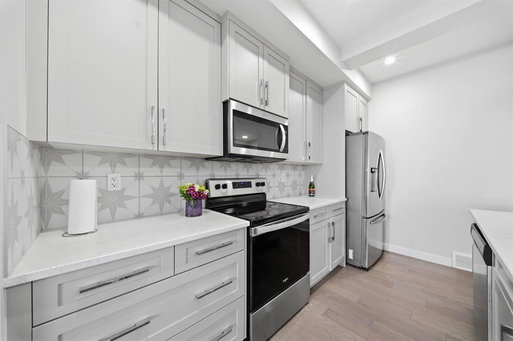 Additional highlights include a smart thermostat, electric range, over-the-range microwave hood fan, quartz countertops and a functional, well-planned layout throughout. The current RPR will be provided at possession. No permits are available for the fence and deck.