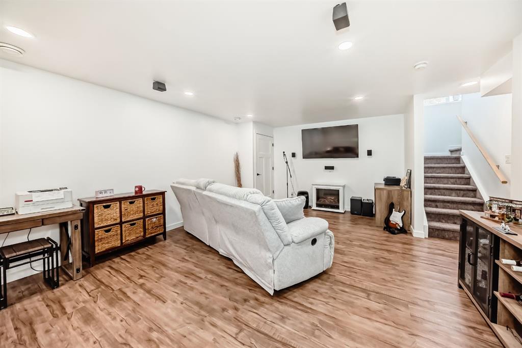 The fully finished basement offers a large recreation space and a 3-piece bathroom — plus electrical rough-in for a surround sound system. Outside, the fully fenced, flat rectangular lot is ready for your vision, with hot tub electrical already roughed in.