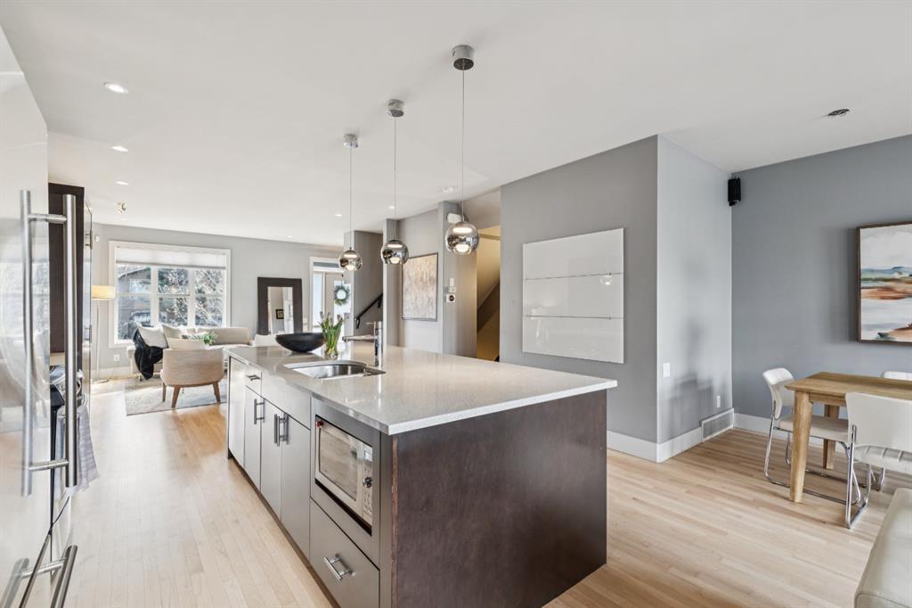 This two storey home has over 2800 square feet of developed space. Step inside and you’re welcomed by beautifully refinished hardwood floors and a bright, open main floor designed for everyday living and entertaining. The layout flows effortlessly from the sitting area into the kitchen, dining space, and comfortable living room.