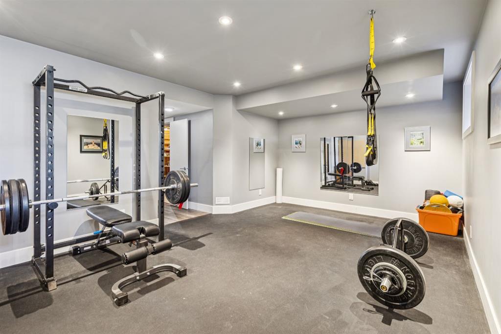 The fully developed lower level offers excellent flexibility with a large recreation room currently used as a gym, a full bathroom, and another bedroom with a walk-in closet. All doors in the home are solid core. The dedicated bike room could also be converted into a fourth bedroom if needed.