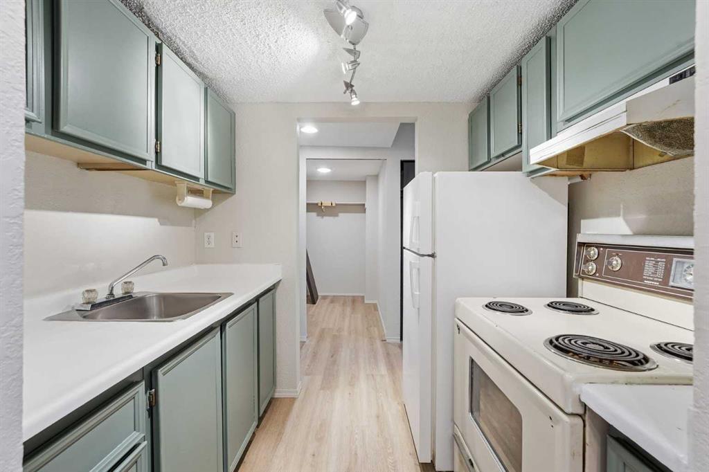 Stylishly updated and ideally located, this top-floor condo combines comfort, convenience and value in one of Calgary’s most connected west-end neighbourhoods. Updated flooring and neutral paint create a bright, inviting atmosphere that’s ready for immediate enjoyment. The efficient galley kitchen features ample cabinetry and generous counter space opening to a dedicated dining area accented by a contemporary lighting for casual meals or entertaining. Relaxation is invited in the spacious living room which extends seamlessly to the private balcony, perfect for morning coffees or evening barbeques and ideally positioned away from the busy street for added peace and privacy. The bedroom offers excellent natural light and closet space, complemented by a 4-piece bathroom and a separate in-suite storage area for added convenience. Assigned off-street parking provides everyday ease. Nestled directly across from Westbrook Mall and just minutes from the LRT, Shaganappi Golf Course and a wide array of shops and restaurants, this home offers a low-maintenance lifestyle with unbeatable walkability. A smart choice for both first-time buyers and investors seeking reliable rental potential in a thriving location!