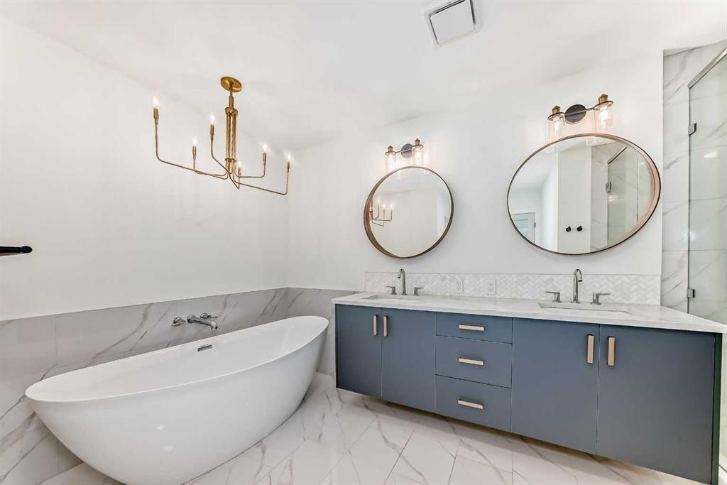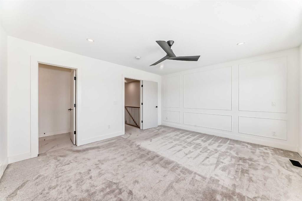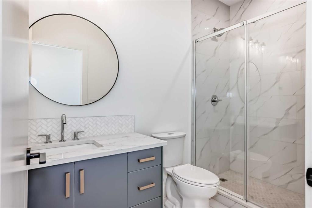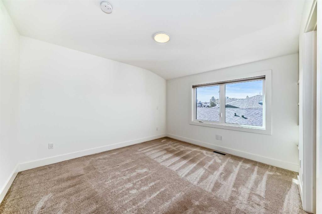 Welcome to West Hillhurst living in a modern designed Rowhouse. With a spacious layout featuring Unobstructed City Views and High-End Finishes, this is one you do not want to miss. This 3-storey Rowhouse boasts 3 bedrooms, 3.5 bathrooms and an attached heated garage with EV hookup. A beautifully designed open concept main floor featuring wide-plank hardwood flooring, oversized triple-pane windows. The kitchen is designed for home chefs and boasts sleek cabinetry, quartz countertops, premium appliances, gas range, open shelves and stylish gold accents. The kitchen island is perfect for entertaining and just off the dining room is a private balcony with BBQ hookup. A stylish powder room completes the main level. Upstairs, the primary suite is a true retreat, featuring a spa-inspired 5-piece ensuite with a soaker tub under a gorgeous chandelier, oversized rainfall shower with build-in quartz bench, double vanity and heated floors. The primary walk-in closet is thoughtfully designed with ample storage. The second bedroom is spacious, complete with its own walk-in closet and a 4-piece ensuite with quartz countertops. A conveniently located laundry room adds to the thoughtful design. The lower level has an additional bedroom and 3-piece bathroom along with an oversized mechanical room with ample storage. Located directly across from highly desirable schools and just steps from parks, shops and restaurants with easy access to Crowchild Trail, downtown and transit, this unbeatable location offers the very best of city living!