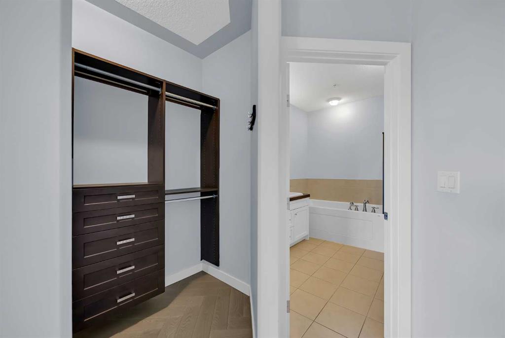 The spacious primary bedroom comfortably accommodates a king-sized bed and offers a luxurious 5-piece ensuite with an oversized walk-in shower, relaxing soaker tub, and a generously sized custom walk-in closet. The second bedroom is bright and well-proportioned—perfect for guests—and provides convenient access to a light-filled den/office space.