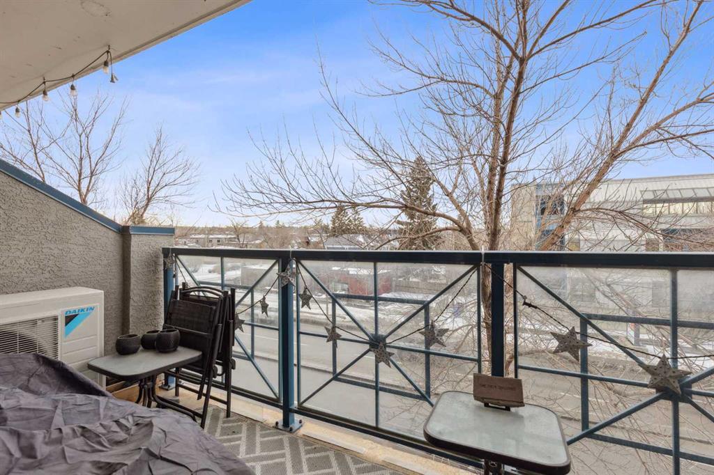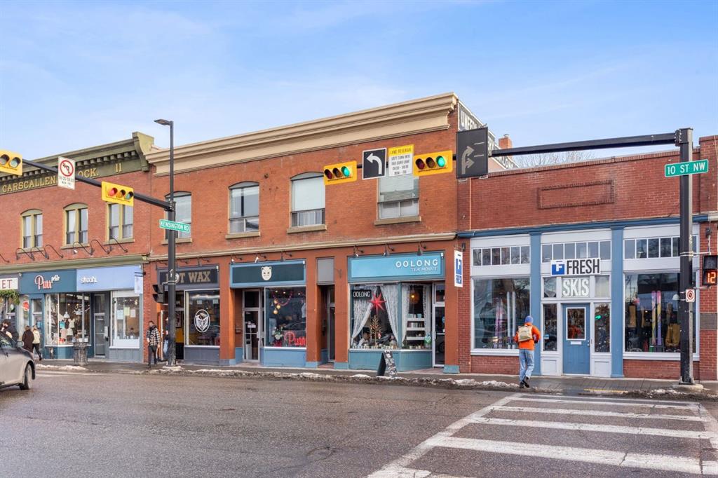 Welcome to Kensington living at its finest. Beautifully updated 2-bedroom, 1-bath condo located in the heart of Hillhurst, just minutes to downtown and steps from Kensington’s shops, cafés, transit, and river pathways. Professionally renovated in 2021, this home features an open-concept layout with quartzite countertops, shaker-style maple cabinetry, stainless steel appliances, laminate flooring, ceramic tile, and a cozy gas fireplace. The main bedroom offers a quiet, serene retreat, perfect for relaxing at the end of the day. The kitchen is well designed with ample storage and functional counter space. Bright living and dining areas open onto a west-facing balcony with natural gas BBQ hookup, ideal for enjoying afternoon and evening sun. Additional highlights include central air conditioning installed in 2024, new bedroom carpet (2025), in-suite laundry, and underground heated titled parking with visitor parking. Residents enjoy an array of building amenities including elevator access, fitness center, party room, secured parking, storage, and visitor parking. Well-managed building in one of Calgary’s most walkable inner-city communities. A move-in-ready home offering excellent value and lifestyle. A must see to be truly appreciated!