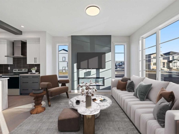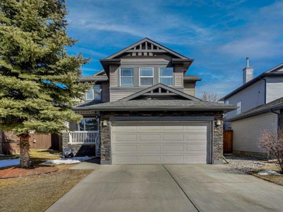 | 5 BEDS | 3 BATHS | WALKOUT BASEMENT / SEPARATE ENTRANCE | TRIPLE CAR GARAGE | CORNER LOT | Convenient Location! | Welcome to this beautiful 5 bedroom, 3 bathroom home located in the community of Lakeside Greens, offering over 3000 sq ft of living space. Vaulted ceilings greet you upon entry, creating a bright and airy feel throughout the main level. The spacious living room features a cozy fireplace and large windows that fill the home with natural light. The open-concept kitchen is perfect for entertaining, complete with stainless steel appliances, quartz countertops, a matching large center island with breakfast bar seating, and plenty of cabinet space. The dining area provides direct access to the outside deck, ideal for summer barbecues and outdoor gatherings. The main level also features a large primary bedroom with its own 4-piece ensuite, along with an additional bedroom and a full 4-piece bathroom. Downstairs, the fully developed walkout basement with separate entrance offers a large recreation/living area with a beautiful fireplace and sliding doors that lead directly outside to the backyard. Three additional good-sized bedrooms and a 3-piece bathroom complete the lower level. Situated on a corner lot, the home features a large fenced backyard and a triple car garage with plenty of additional parking. Located just steps from Lakeside Golf Club and minutes to Chestermere Lake, shopping, schools, playgrounds, and more. Do not miss this opportunity. Call your favourite agent to book a showing today!