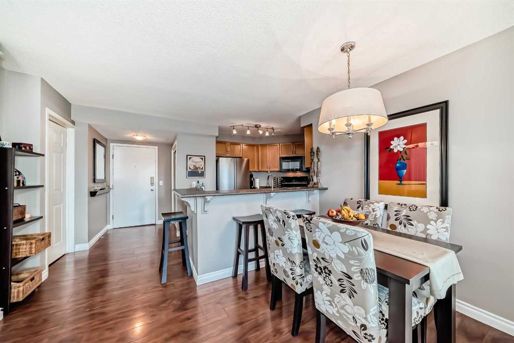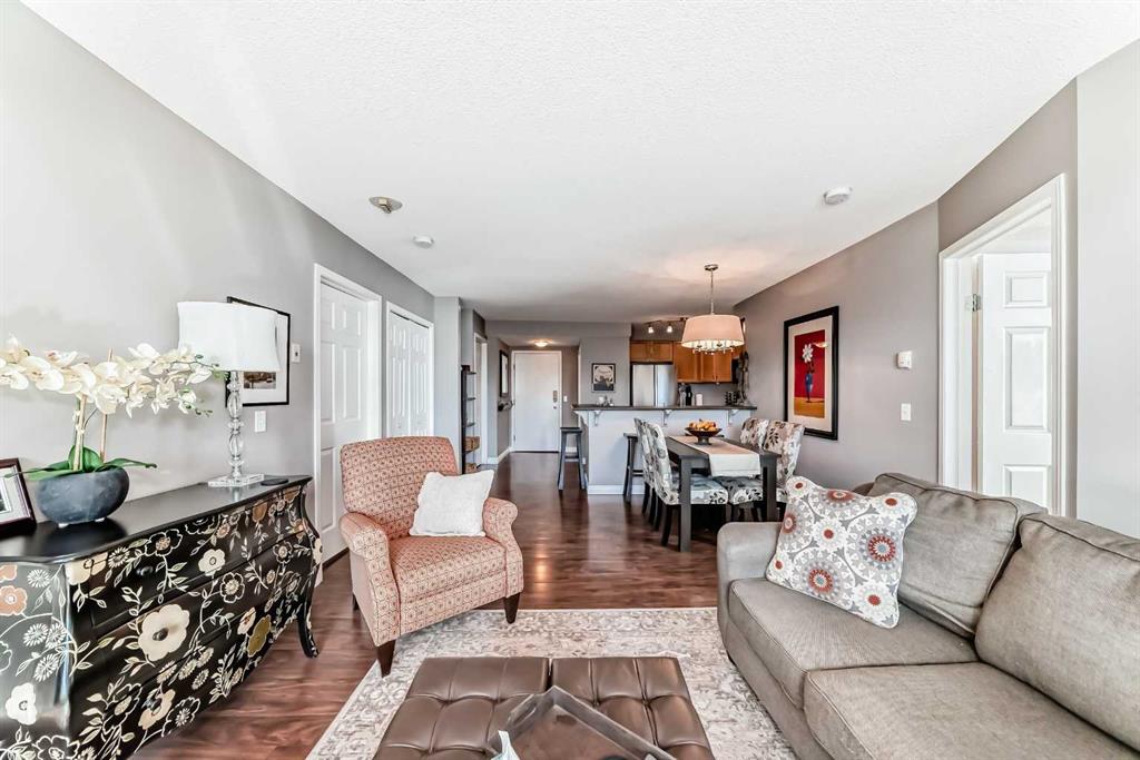 LOCATION, LIFESTYLE, and LUXURY — Welcome to Discovery Pointe! Nestled in the heart of one of Downtown Calgary’s most desirable and walkable inner-city neighborhoods, the West End! This stunning 2-bedroom, 2-bathroom home is your gateway to vibrant urban living! Located on the third floor, this unit boasts a bright, modern aesthetic with high-end finishes throughout. The gourmet kitchen features sleek countertops, premium stainless steel & black appliances, and plenty of cupboard and counter space — perfect for the passionate home chef. A large breakfast bar opens to the dedicated dining area and a cozy living room complete with a gas fireplace — the perfect space to cuddle up to your favourite book or unwind with the latest Netflix binge. Step outside onto your oversized covered balcony — perfect for BBQs, hosting friends and family alike, or simply enjoying a quiet morning coffee in the fresh air. The primary bedroom is filled with natural light and connects to a generous walk-through closet leading to your 3-piece bathroom, complete with a glass-enclosed standup shower — a cozy retreat at the end of your day! The spacious second bedroom could easily serve as a den or office for quiet work and includes a 4-piece ensuite bath as well. Additional conveniences include concierge services, in-suite laundry, a TITLED underground parking stall, underground visitor parking, a massive party room for hosting special events, a games room with ping-pong and billiards, and an extremely well equipped fitness centre on the 3rd floor steps from your new home. This prime location offers unbeatable access to all the trendy shops, cafes, and restaurants of Downtown Calgary to satisfy whatever you’re craving. Live steps from the Bow River pathways, parks, and C-Train station – with free transportation within the downtown core – this location offers the best of urban convenience and natural beauty. Don’t miss your chance to own in one of Calgary’s most coveted neighborhoods — call today to book your private showing!