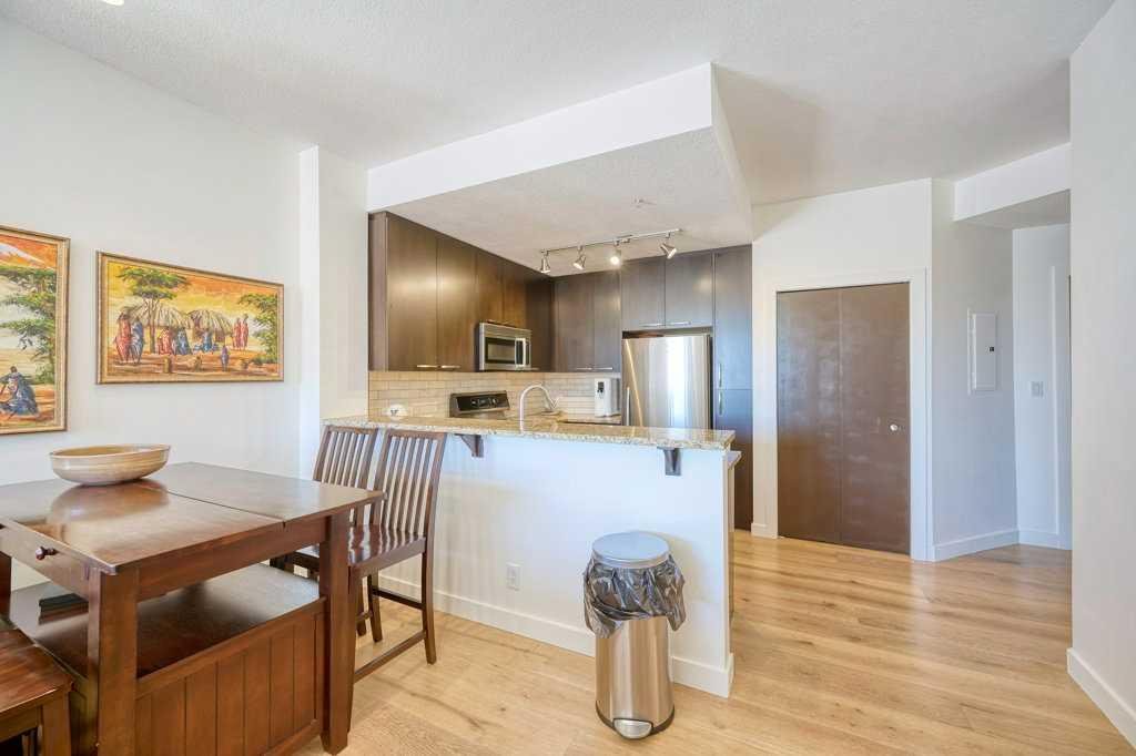 OPEN HOUSE FRIDAY OCTOBER 10TH 4:00 PM TO 6:00 PM BEVERAGES WILL BE SERVED. Welcome to Destiny – A Premium Urban Residence in the Heart of Mission. Experience refined living in this exceptionally well-built concrete condo, offering superior soundproofing with solid double concrete floors and walls for maximum comfort and privacy. Ideally located in Calgary’s vibrant Mission district, Destiny places you just steps from premier amenities including Mercato, Purple Perk, OEB, and a wide array of shops, cafes, and services. Outdoor enthusiasts will love the direct access to picturesque running and cycling trails along the Elbow River and Stanley Park escarpment. Plus, downtown is just a flat, 10-minute walk away. One of the standout features of this building is the expansive rooftop patio, offering stunning 360-degree views of the city skyline. Perfect for hosting private summer events, especially during Stampede season when residents enjoy front-row views of the fireworks. This thoughtfully renovated unit features a modernized kitchen, updated bathrooms, new flooring, fresh neutral paint, and the addition of a highly functional pantry. High-end stainless-steel appliances complement the contemporary design, while the open-concept layout with 9-foot ceilings creates a spacious and inviting atmosphere—ideal for both everyday living and entertaining. Enjoy abundant natural light from the large southwest-facing windows and relax on the private balcony. A built-in wall-mounted air conditioning unit with a customizable photo display adds both comfort and style. Included with the unit is a titled, heated underground parking stall located in a convenient corner position, along with a dedicated storage locker for added space. Come and view it today.