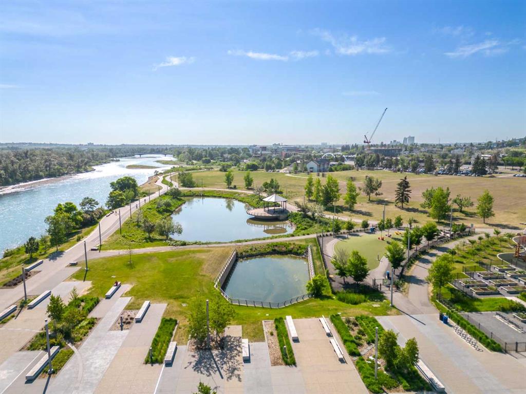 Live car-free, connected and fully plugged in at N3 in East Village – a bright corner unit in one of Calgary’s most successful environmentally conscious buildings. With top Walk, Bike, Transit Scores and the free-fare C-Train zone literally steps away, this is inner-city living done right. East Village is a true social hub: walk or bike to Parlour Ice Cream, CharBar, Rosso Coffee, the Central Library, Studio Bell, Stampede Park and even the new arena. The Bow River pathways, dog park, basketball courts, Olympic Plaza skating, and St. Patrick’s Island are all minutes from your door. Inside, enjoy a flood of natural light through floor-to-ceiling windows and a smart, larger than average 2 bedroom layout with separation – ideal for roommates, couples or investors. N3 elevates daily life with a multi-level fitness centre, bike storage with dedicated ramp and a rooftop patio with BBQs plus sweeping river, mountain and downtown views. Whether you’re buying your first home, investing or planting roots downtown, this is how you get immersed into the East Village lifestyle.