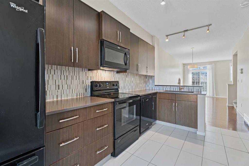 The open-concept main level features an elegant living and dining area complemented by a contemporary kitchen with sleek cabinetry, stainless steel appliances, and generous counter space, perfect for both everyday living and entertaining. Large windows and a private balcony create a bright, inviting atmosphere.