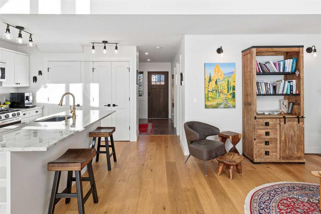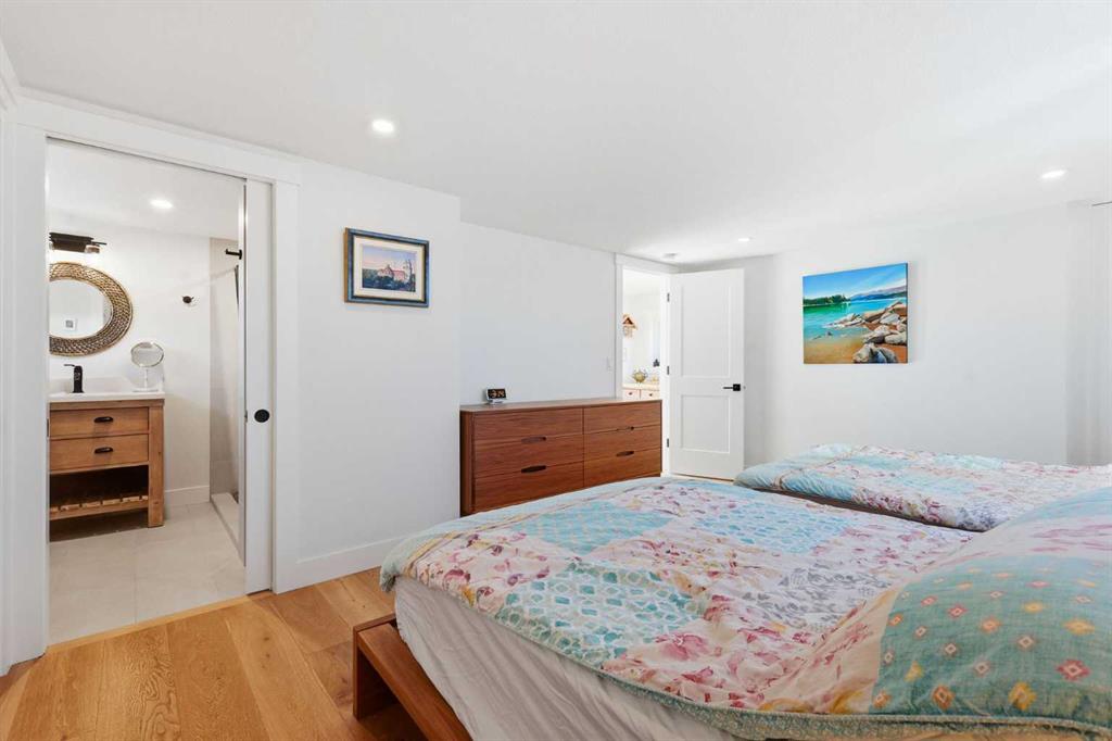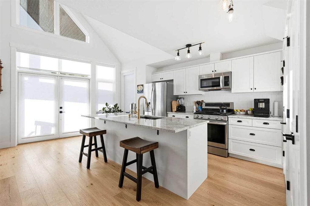 Step inside to discover a BRIGHT open and functional floor plan. Floor to ceiling EXPANSIVE windows and CUSTOM BLINDS welcome you with an abundance of NATURAL SUNLIGHT creating a serene environment ideal for relaxation. The attention to detail is evident at every turn, showcasing the meticulous CRAFTSMANSHIP and thoughtful design that define this cottage built by CUSTOM HOME BUILDER Bow View Homes. The living room impresses with stunning 20-foot VAULTED ceilings and a pellet stove to provide warmth and inviting ambiance. Entertain in your BRIGHT, OPEN kitchen with stainless steel appliances, granite countertops, custom soft-close cabinetry, and access to the front COVERED PORCH. There is no lack of storage in this thoughtfully laid out kitchen perfect for all your entertaining needs. The main floor also includes a large back Foyer with BUILT IN storage, and a bedroom with a 3-piece bathroom across the hall.