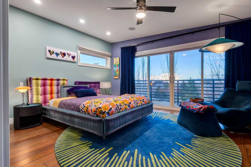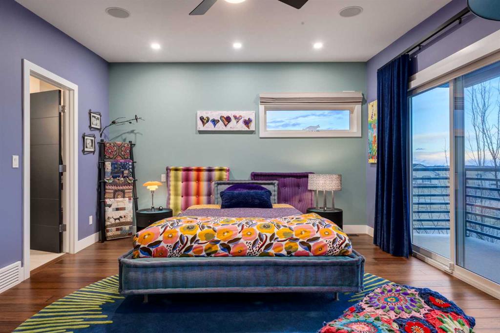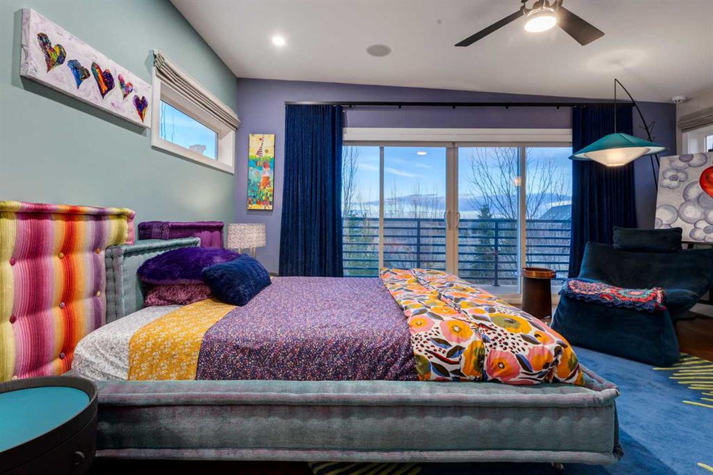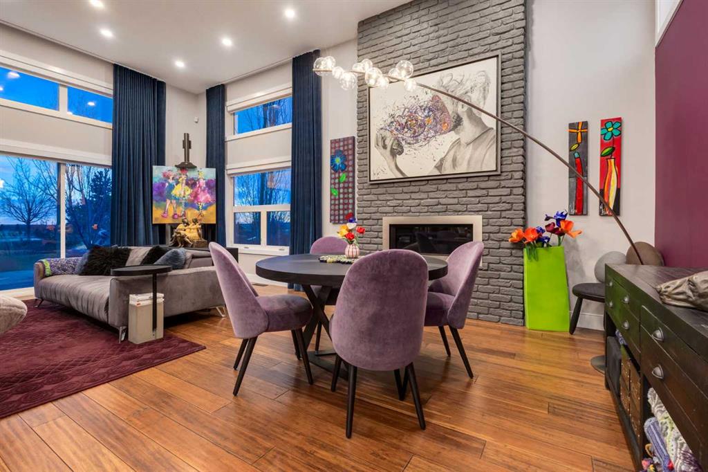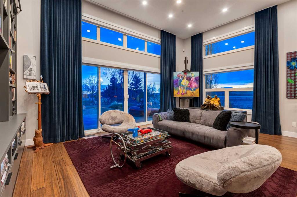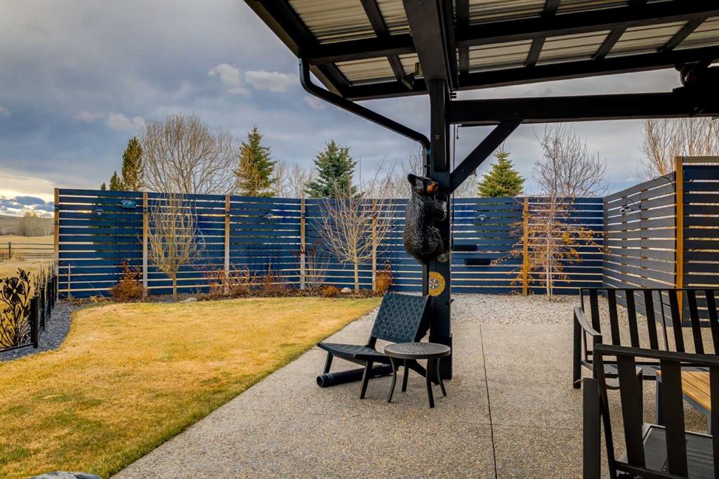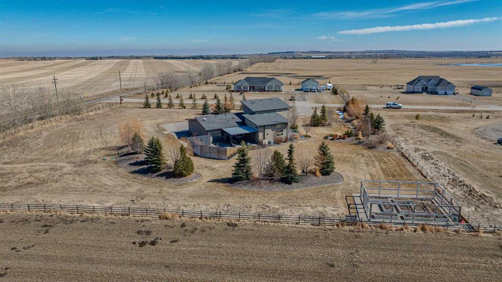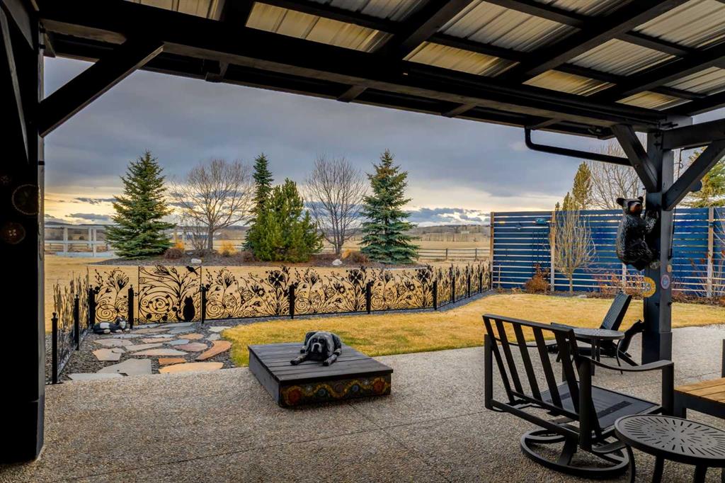 Located in the tranquil community of Fraser Ranch Estates, this modern country home features views of rolling pastoral land while being less than ten minutes from Okotoks, under fifteen minutes to Calgary and within five minutes to the Calgary Polo Club and Strathcona Tweedsmuir School. Professionally designed landscaping blends mature trees with elegant shrub beds offering both privacy and peacefulness and a fully fenced vegetable garden entices your ‘green thumb’. The interior of this home boasts careful curation in every corner, creating a true work of art. From the designer light fixtures imported from Italy to the unique tile patterns in the kitchen and bathrooms, this home is truly one of kind. The main floor includes a spectacular kitchen with new high-end appliances, bamboo grain and feature ‘pull-up’ high gloss brown cabinets and a Concrete Stone waterfall island. The ‘magazine worthy’ living room and dining room boast fourteen-foot ceilings, a full-height painted brick fireplace and an entire wall clad in custom library shelving complete with a rolling ladder. A home office with a custom desk and storage is awash in natural light from the southwest windows. A side deck can be accessed both via the office and through dual sliding glass doors in the living room, creating an indoor-outdoor living experience, and a covered rear patio set off the kitchen features unique design elements and is a perfect spot to watch the sun set in the west. Up an open riser wood staircase lined with horizontal black metal railing, the entire second level is a ‘loft-style’ primary suite. Dual sliding glass doors lead to a private balcony that features stunning views, a spacious walk-in closet is fully adorned with custom storage, and a spa-like ensuite boasts heated floors and a spacious steam shower. The lower level includes a large second bedroom, a full bathroom, an incredible laundry room and a very large ‘flex space’ that offers endless possibilities for a home gym, a hobby room, a home theatre or whatever your heart desires. A dream garage, fantastic features like automatic programable blinds and so much more put this home in a class of its own.