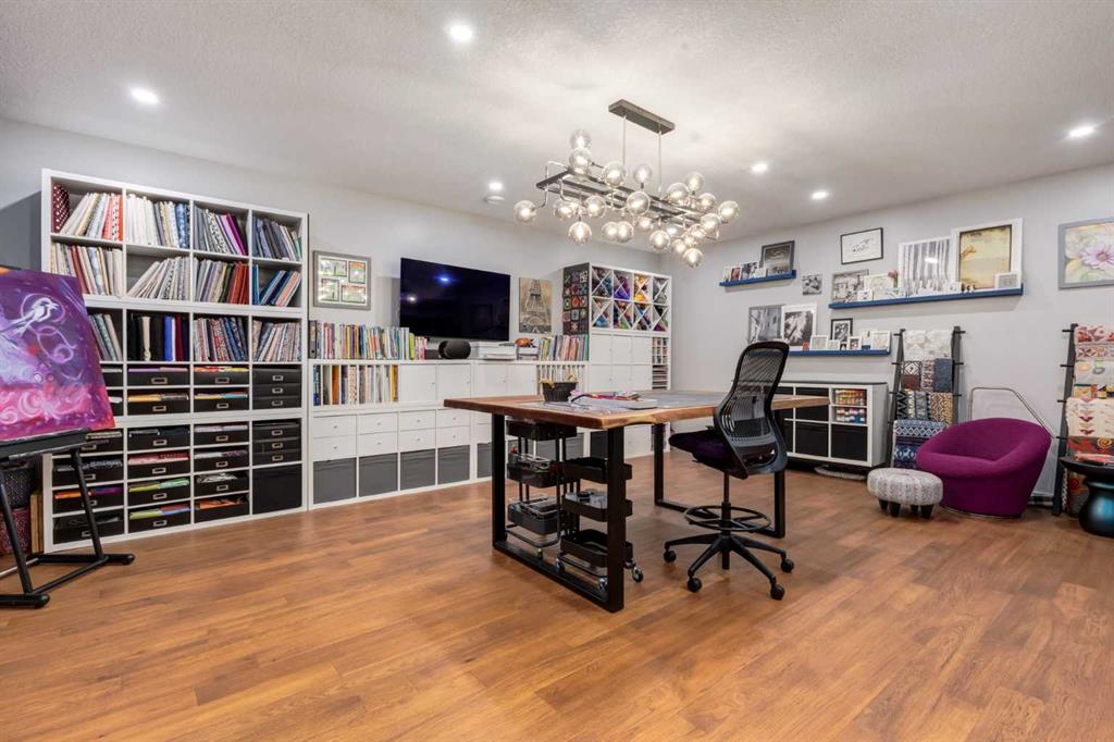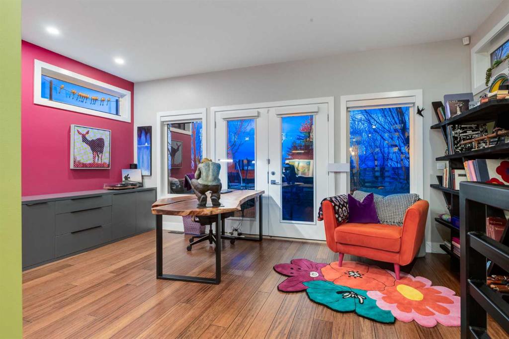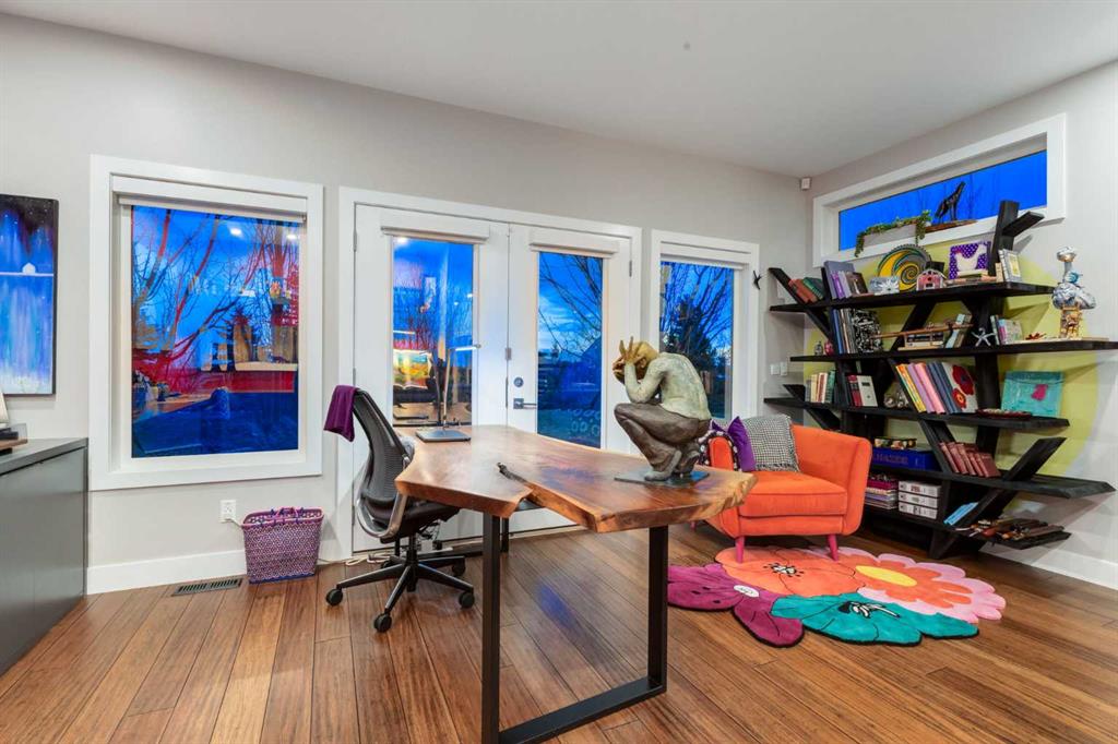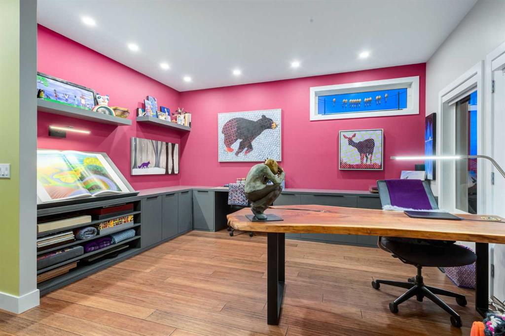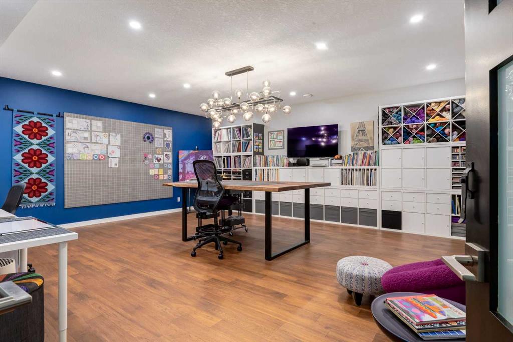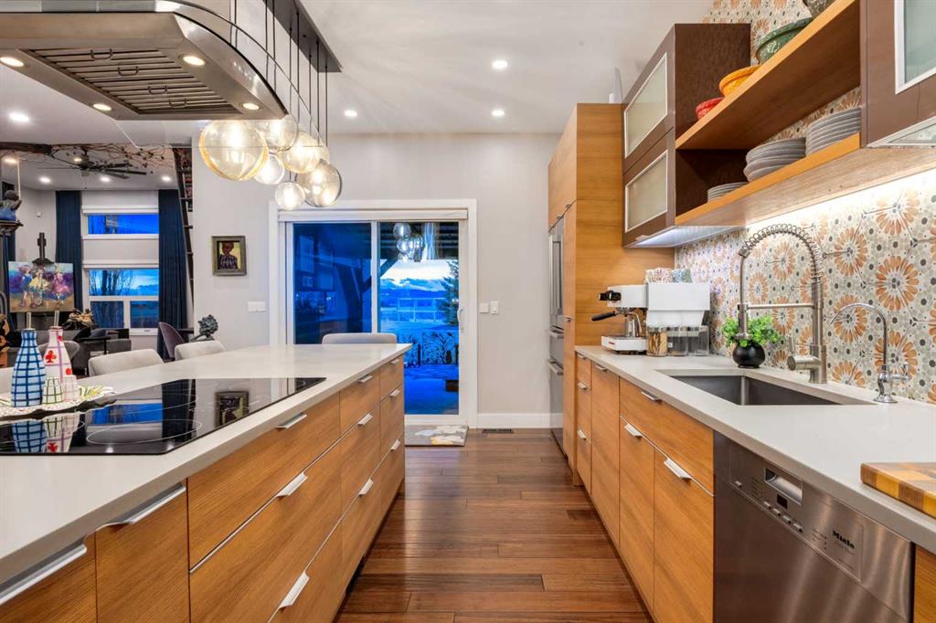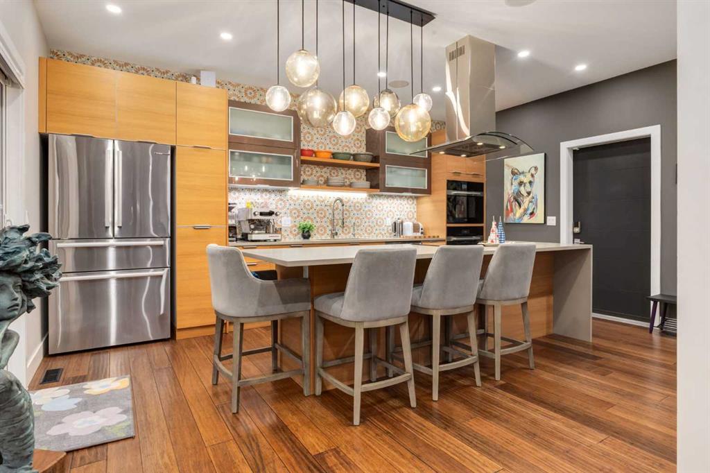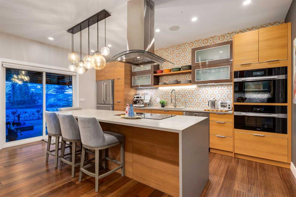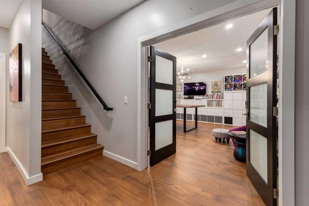 Located in the tranquil community of Fraser Ranch Estates, this modern country home features views of rolling pastoral land while being less than ten minutes from Okotoks, under fifteen minutes to Calgary and within five minutes to the Calgary Polo Club and Strathcona Tweedsmuir School. Professionally designed landscaping blends mature trees with elegant shrub beds offering both privacy and peacefulness and a fully fenced vegetable garden entices your ‘green thumb’. The interior of this home boasts careful curation in every corner, creating a true work of art. From the designer light fixtures imported from Italy to the unique tile patterns in the kitchen and bathrooms, this home is truly one of kind. The main floor includes a spectacular kitchen with new high-end appliances, bamboo grain and feature ‘pull-up’ high gloss brown cabinets and a Concrete Stone waterfall island. The ‘magazine worthy’ living room and dining room boast fourteen-foot ceilings, a full-height painted brick fireplace and an entire wall clad in custom library shelving complete with a rolling ladder. A home office with a custom desk and storage is awash in natural light from the southwest windows. A side deck can be accessed both via the office and through dual sliding glass doors in the living room, creating an indoor-outdoor living experience, and a covered rear patio set off the kitchen features unique design elements and is a perfect spot to watch the sun set in the west. Up an open riser wood staircase lined with horizontal black metal railing, the entire second level is a ‘loft-style’ primary suite. Dual sliding glass doors lead to a private balcony that features stunning views, a spacious walk-in closet is fully adorned with custom storage, and a spa-like ensuite boasts heated floors and a spacious steam shower. The lower level includes a large second bedroom, a full bathroom, an incredible laundry room and a very large ‘flex space’ that offers endless possibilities for a home gym, a hobby room, a home theatre or whatever your heart desires. A dream garage, fantastic features like automatic programable blinds and so much more put this home in a class of its own.