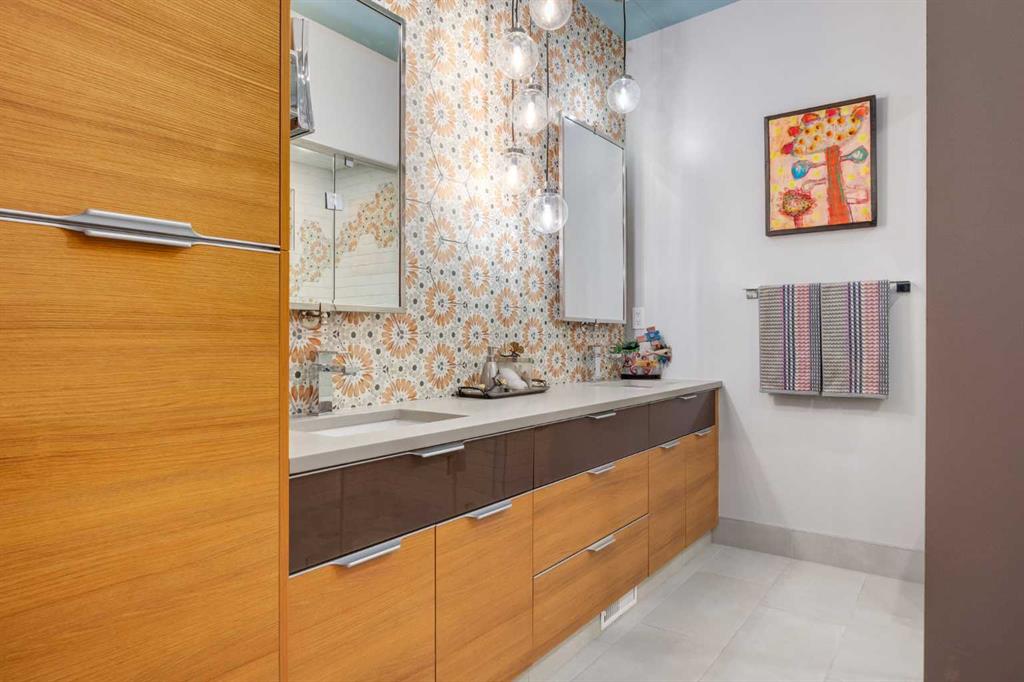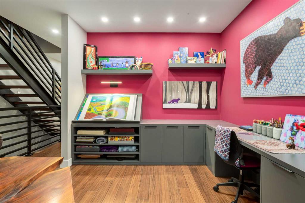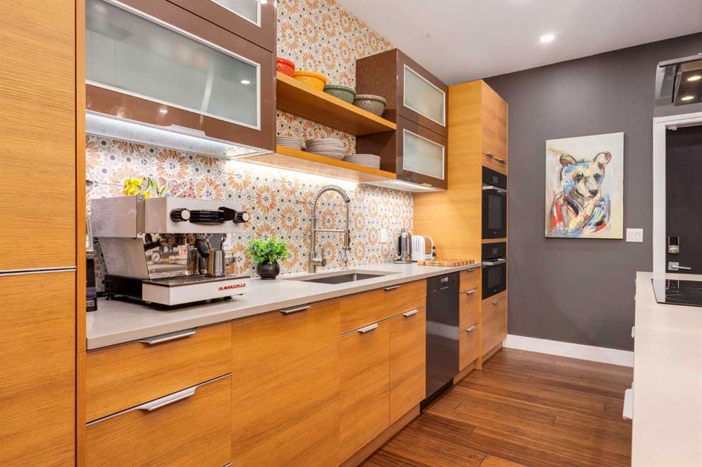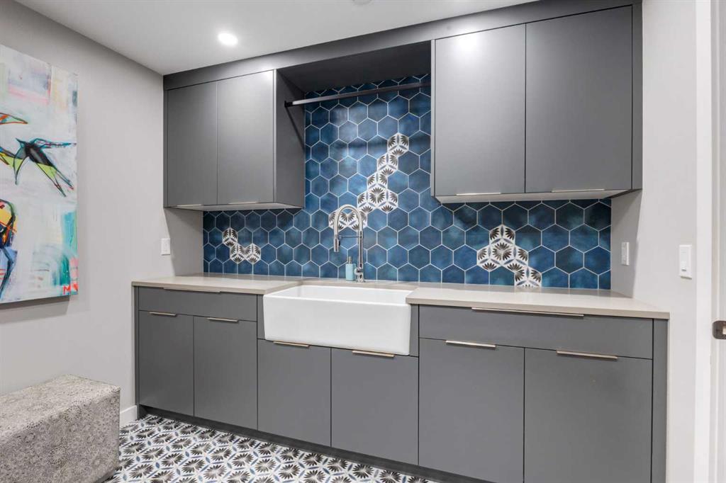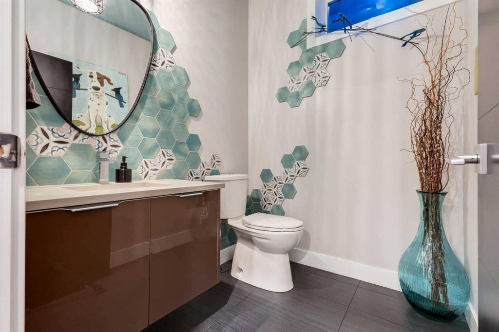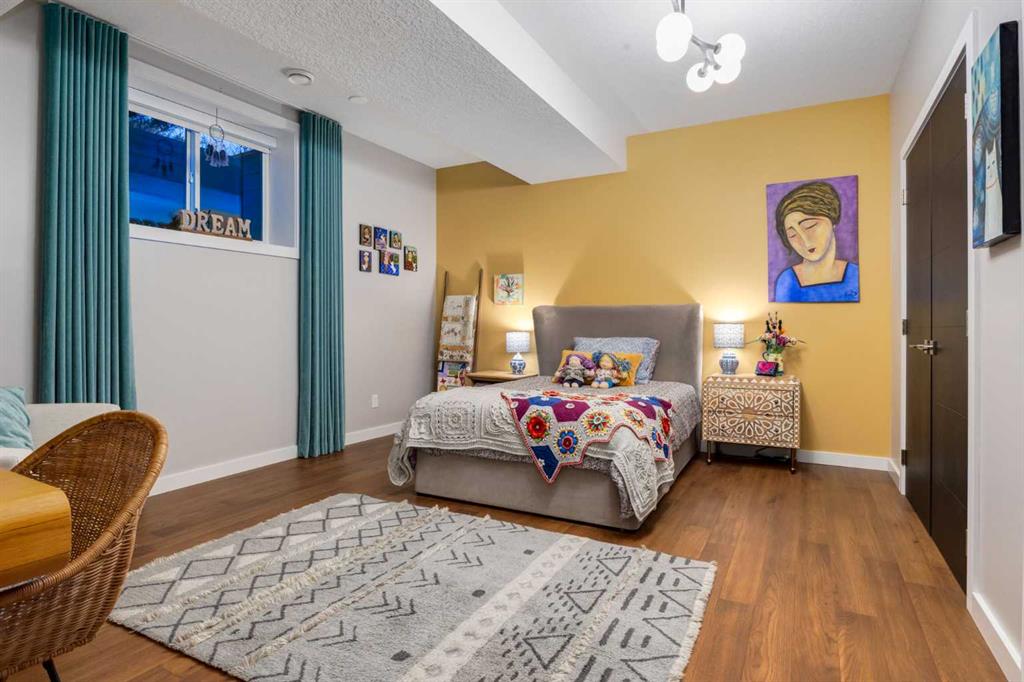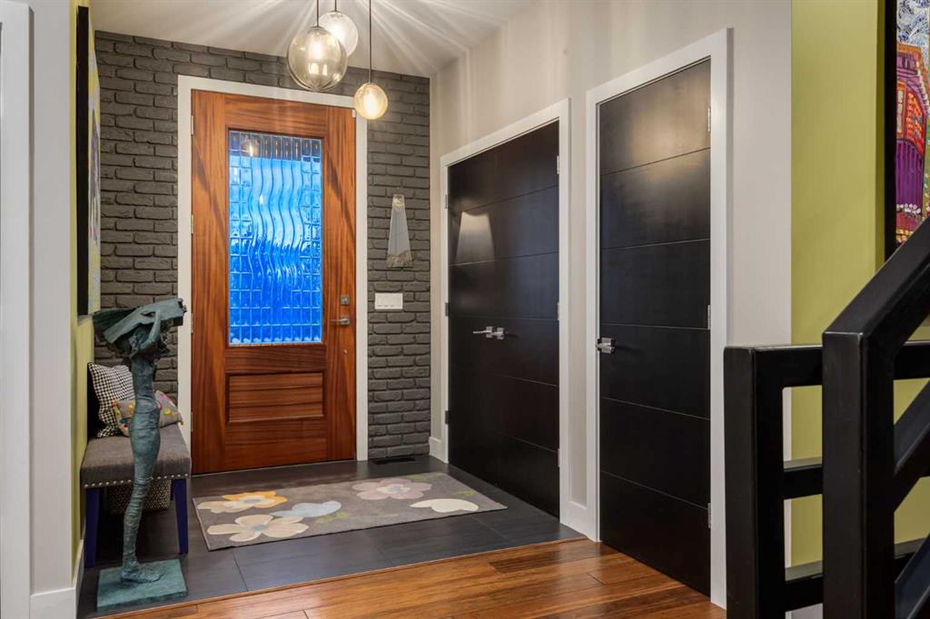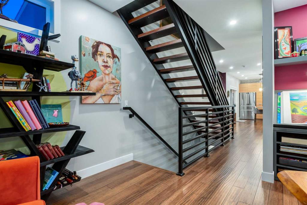 Located in the tranquil community of Fraser Ranch Estates, this modern country home features views of rolling pastoral land while being less than ten minutes from Okotoks, under fifteen minutes to Calgary and within five minutes to the Calgary Polo Club and Strathcona Tweedsmuir School. Professionally designed landscaping blends mature trees with elegant shrub beds offering both privacy and peacefulness and a fully fenced vegetable garden entices your ‘green thumb’. The interior of this home boasts careful curation in every corner, creating a true work of art. From the designer light fixtures imported from Italy to the unique tile patterns in the kitchen and bathrooms, this home is truly one of kind. The main floor includes a spectacular kitchen with new high-end appliances, bamboo grain and feature ‘pull-up’ high gloss brown cabinets and a Concrete Stone waterfall island. The ‘magazine worthy’ living room and dining room boast fourteen-foot ceilings, a full-height painted brick fireplace and an entire wall clad in custom library shelving complete with a rolling ladder. A home office with a custom desk and storage is awash in natural light from the southwest windows. A side deck can be accessed both via the office and through dual sliding glass doors in the living room, creating an indoor-outdoor living experience, and a covered rear patio set off the kitchen features unique design elements and is a perfect spot to watch the sun set in the west. Up an open riser wood staircase lined with horizontal black metal railing, the entire second level is a ‘loft-style’ primary suite. Dual sliding glass doors lead to a private balcony that features stunning views, a spacious walk-in closet is fully adorned with custom storage, and a spa-like ensuite boasts heated floors and a spacious steam shower. The lower level includes a large second bedroom, a full bathroom, an incredible laundry room and a very large ‘flex space’ that offers endless possibilities for a home gym, a hobby room, a home theatre or whatever your heart desires. A dream garage, fantastic features like automatic programable blinds and so much more put this home in a class of its own.