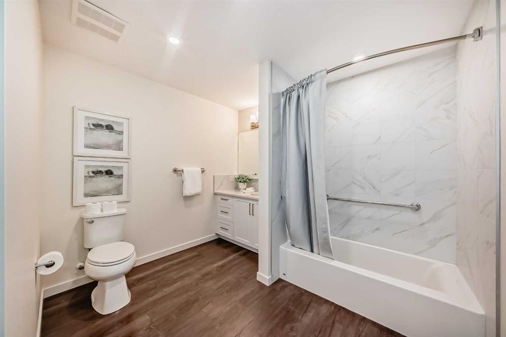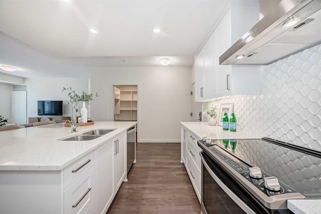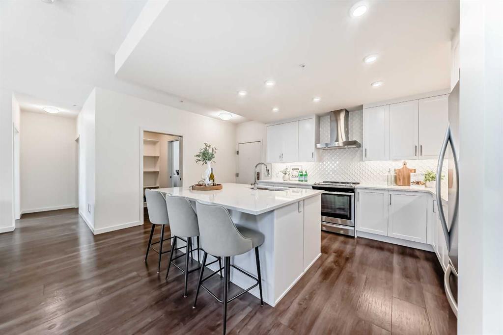 Welcome to the Odyssey – in Westman Village. Available for immediate possession, this lovely 1322 sqft 2 bedroom, 2 full bathroom property on the 3rd floor is a real stunner. As you enter the home you are greeted with a bright open plan that is flooded with natural light from the expansive windows, and light color scheme. A large eat-in kitchen with quartz counters, stainless steel appliances, and island with seating. As you move into the living room and dining area you really notice the windows, and the full-width balcony that is 24 feet wide by 7.5 feet deep. The master bedroom and spare bedrooms are well laid out, and easy to furnish. Both have walk-in closets, and the master has its own ensuite. Two titled underground parking stalls are included as well. This 55+ Adult-only community has unmatched amenities available to its residents. To truly understand the amazing amenities available to you in Westman Village, I encourage you to visit their website: westmanvillage.com/homes/active-adult-living/